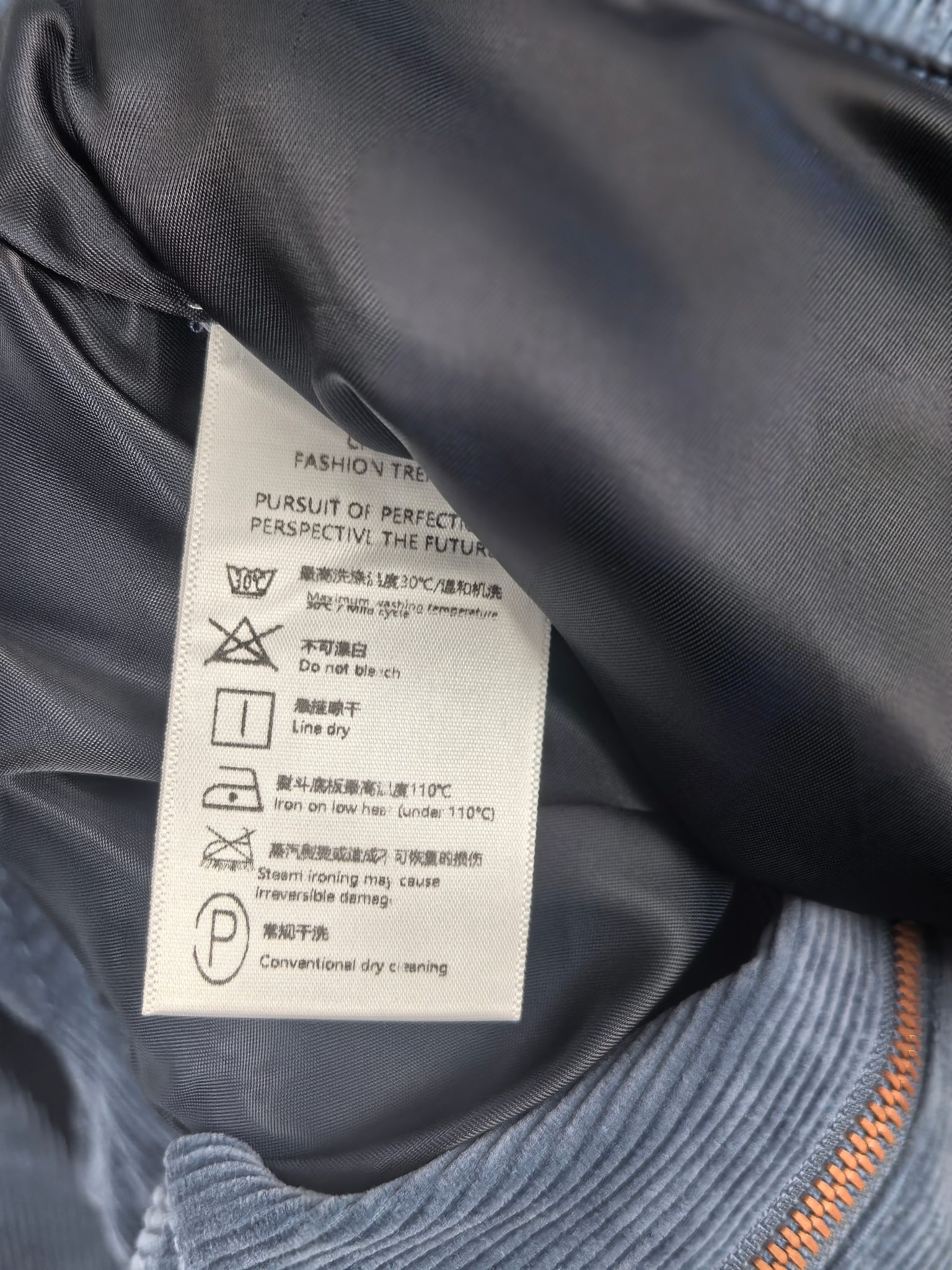 这款衣服是AAAAA 1:1 质量 (非常棒). 使用了和原版一模一样的材料. 商标部分也保持了和杰尼亚/Zegna一样. 图片拍摄是实物衣服拍摄, 您所收到的实物保证和我们图片一模一样.