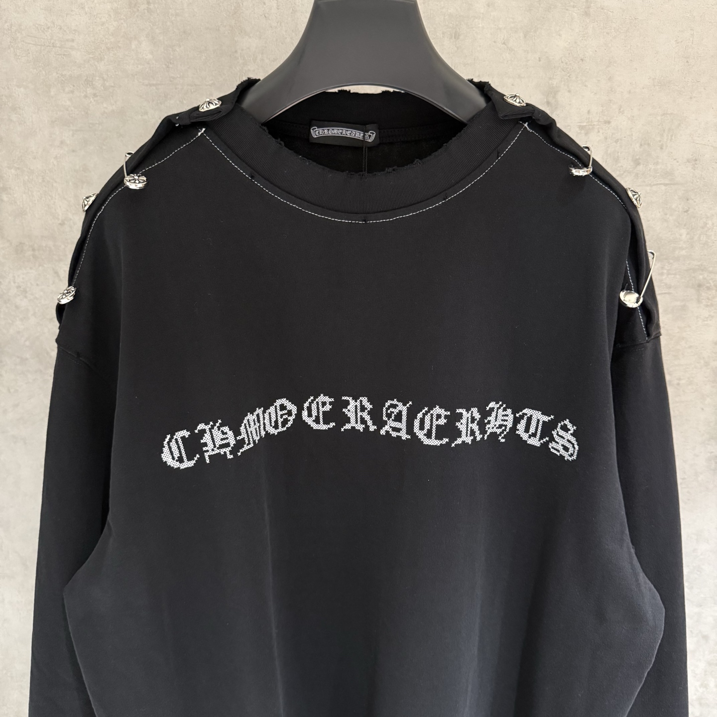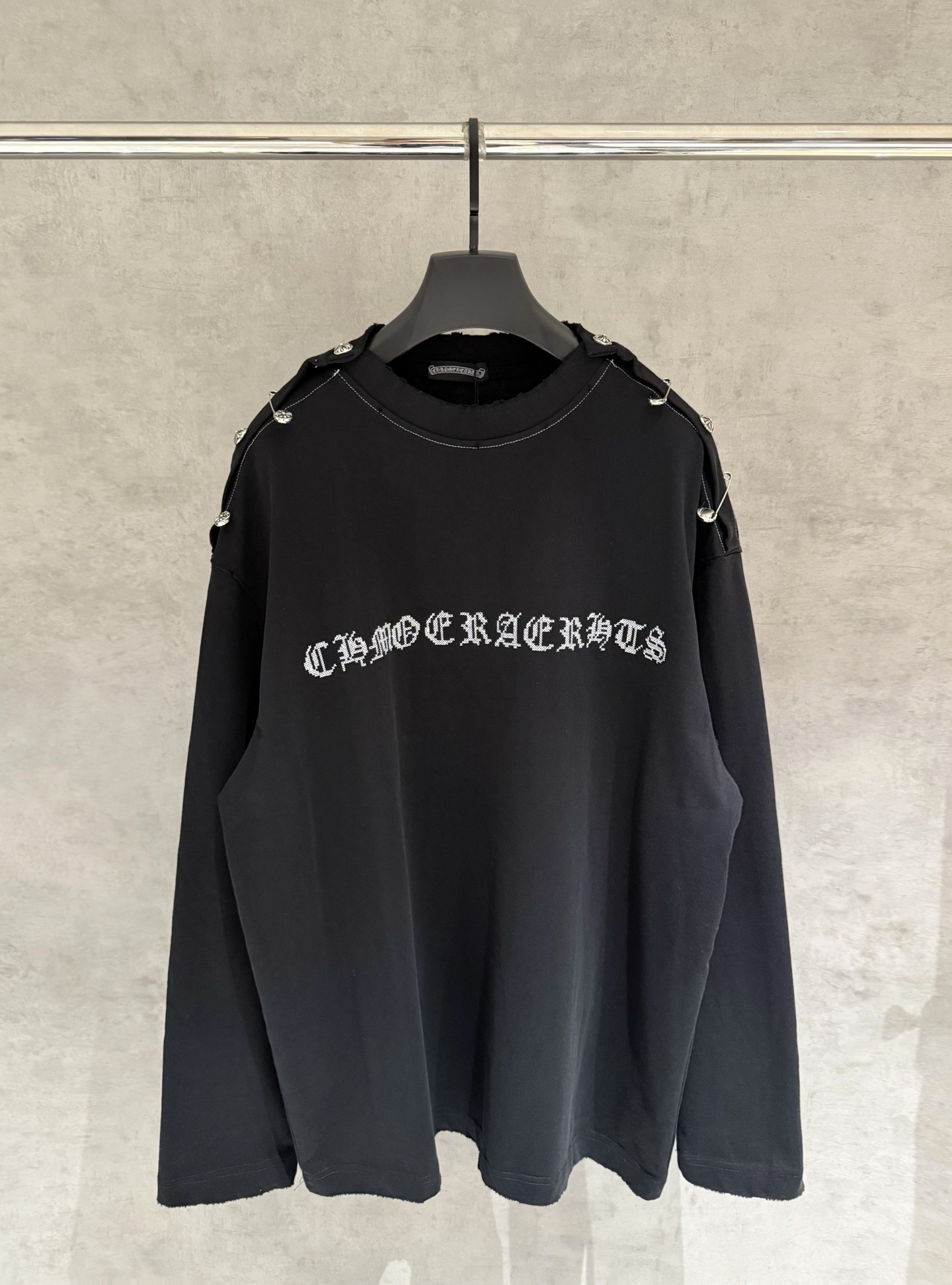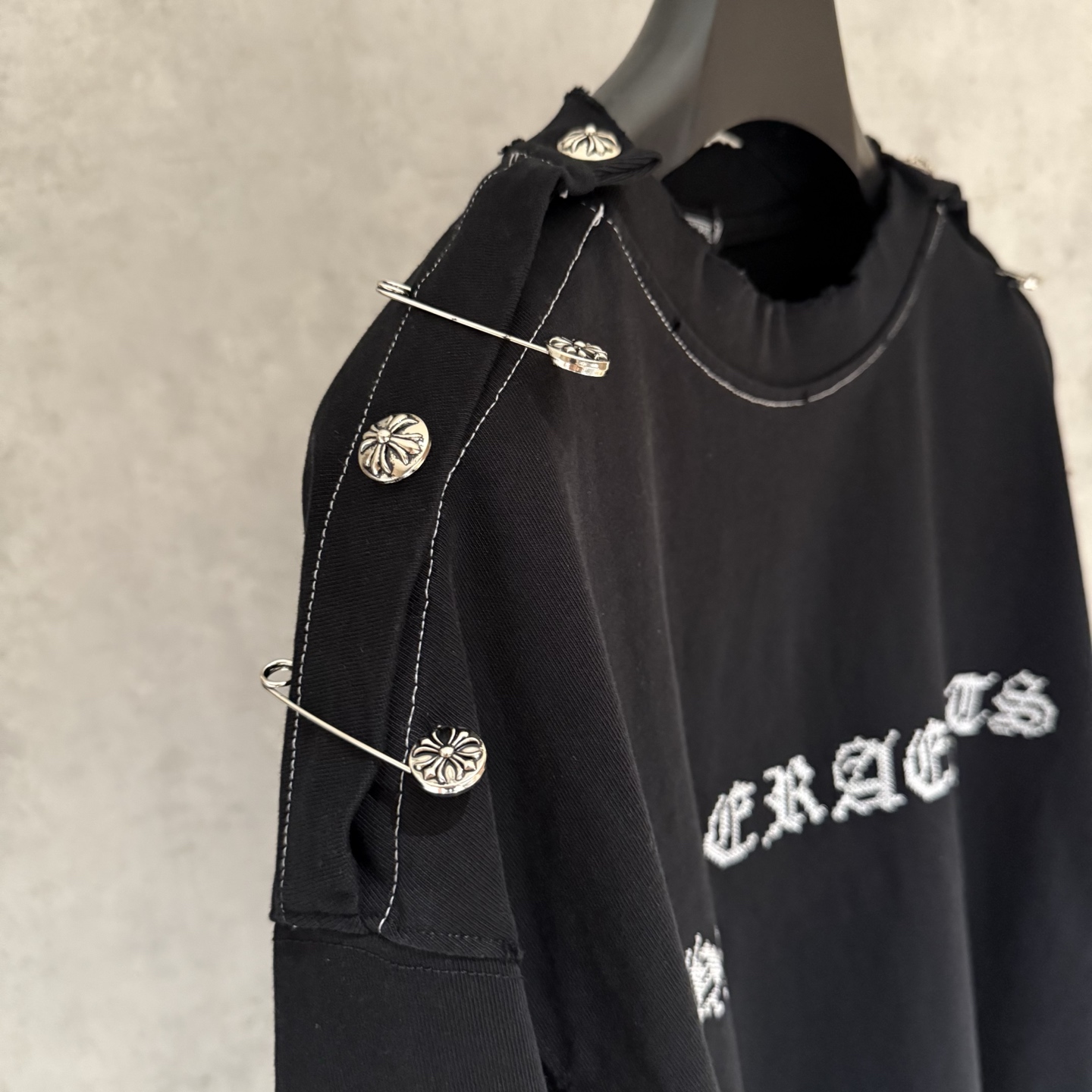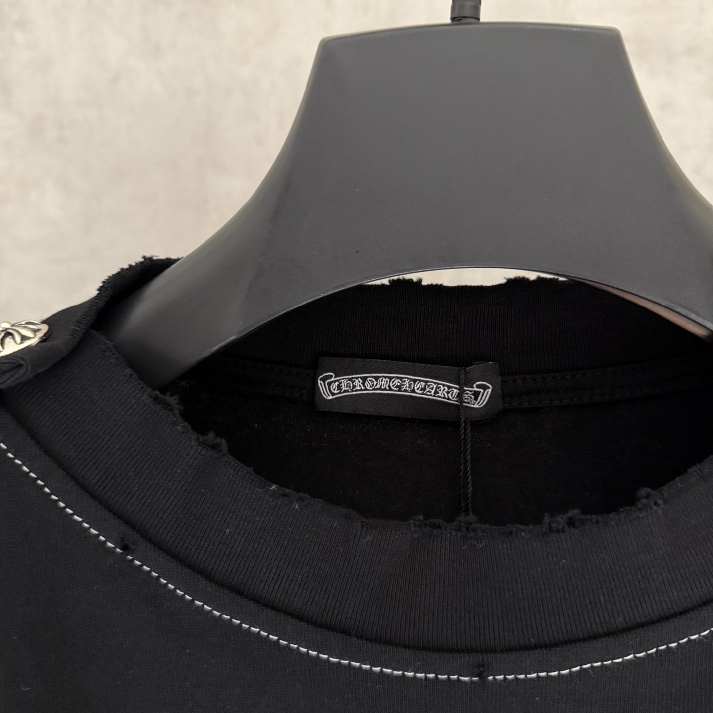这款衣服是AAAAA 1:1 质量 (非常棒). 使用了和原版一模一样的材料. 商标部分也保持了和克罗心/Chrome Hearts一样. 图片拍摄是实物衣服拍摄, 您所收到的实物保证和我们图片一模一样.