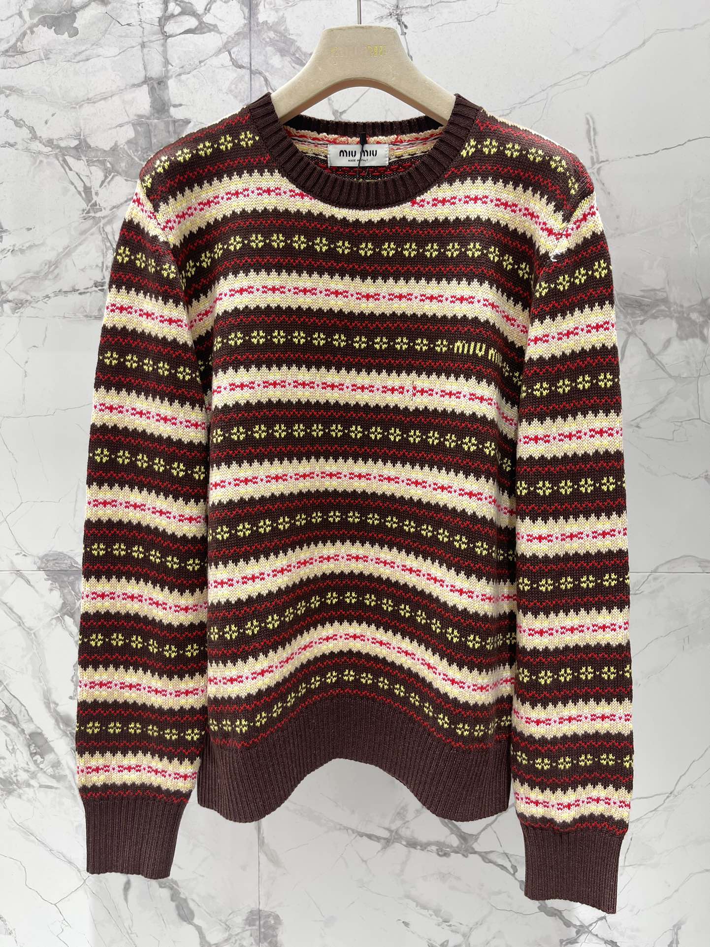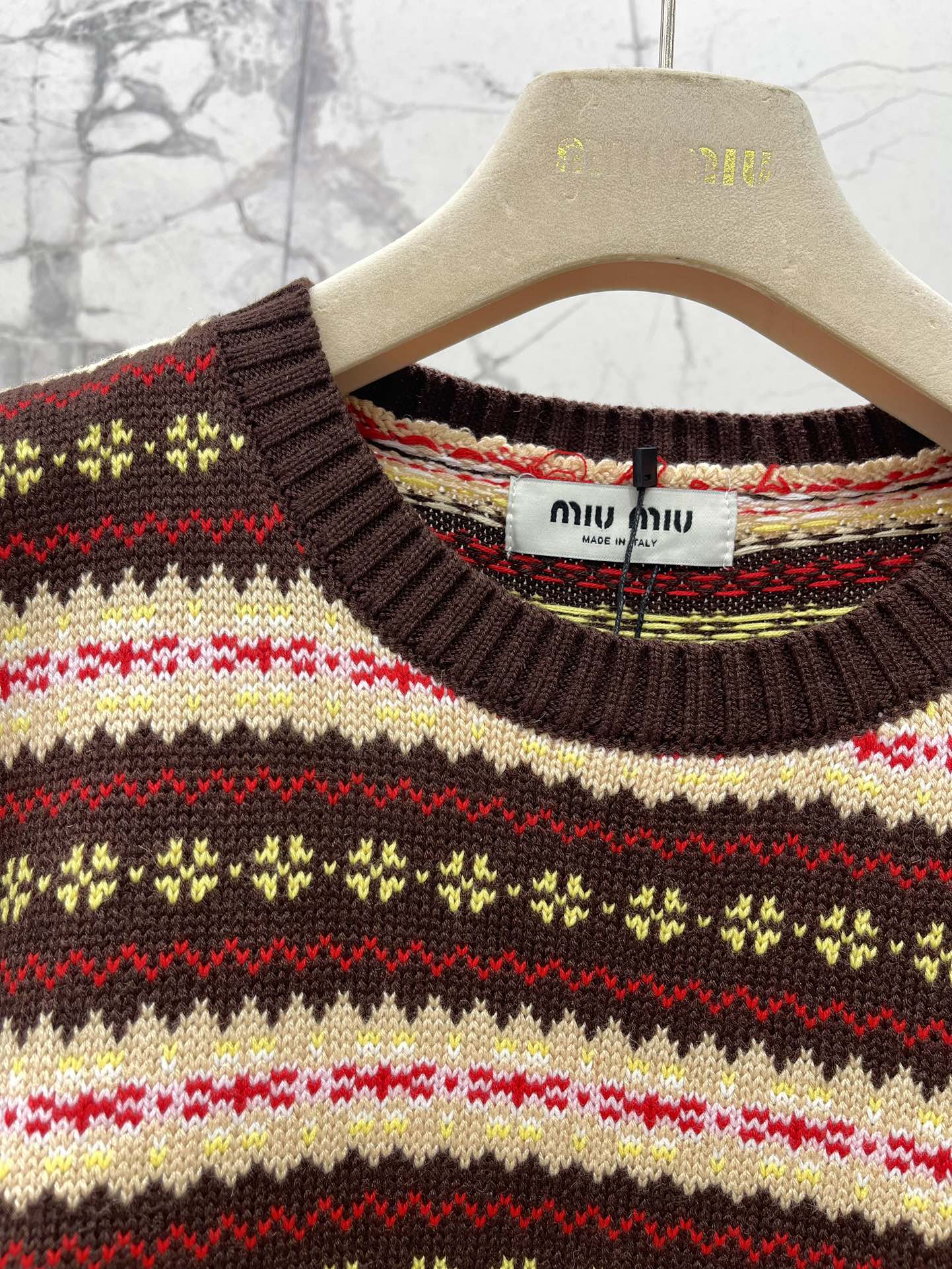这款衣服是AAAAA 1:1 质量 (非常棒). 使用了和原版一模一样的材料. 商标部分也保持了和缪缪/Miu Miu一样. 图片拍摄是实物衣服拍摄, 您所收到的实物保证和我们图片一模一样.