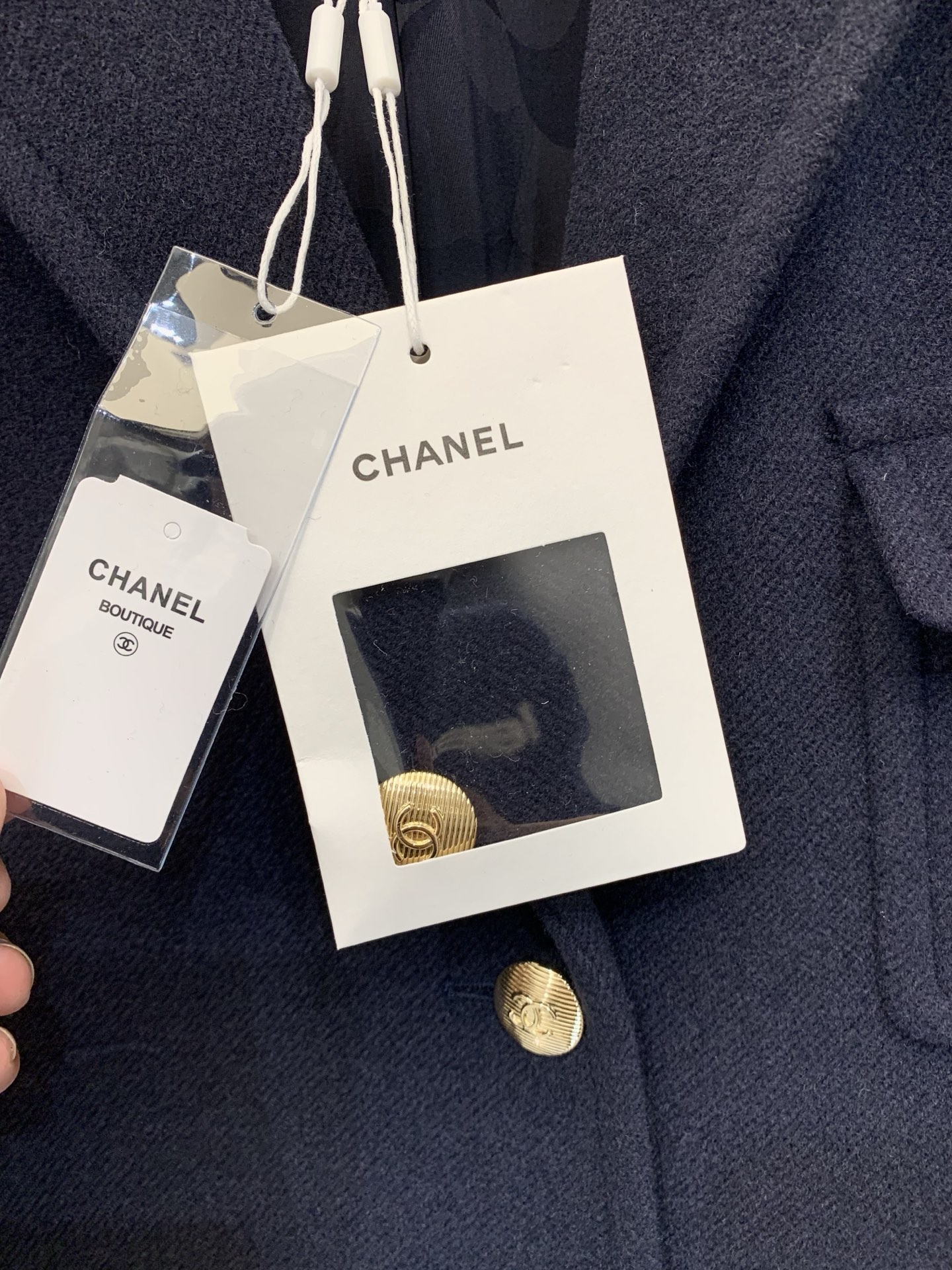 这款衣服是AAAAA 1:1 质量 (非常棒). 使用了和原版一模一样的材料. 商标部分也保持了和香奈儿/Chanel一样. 图片拍摄是实物衣服拍摄, 您所收到的实物保证和我们图片一模一样.