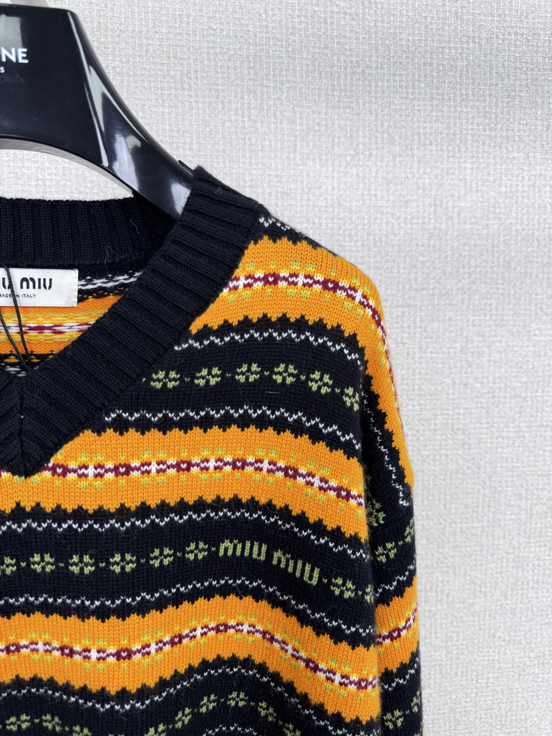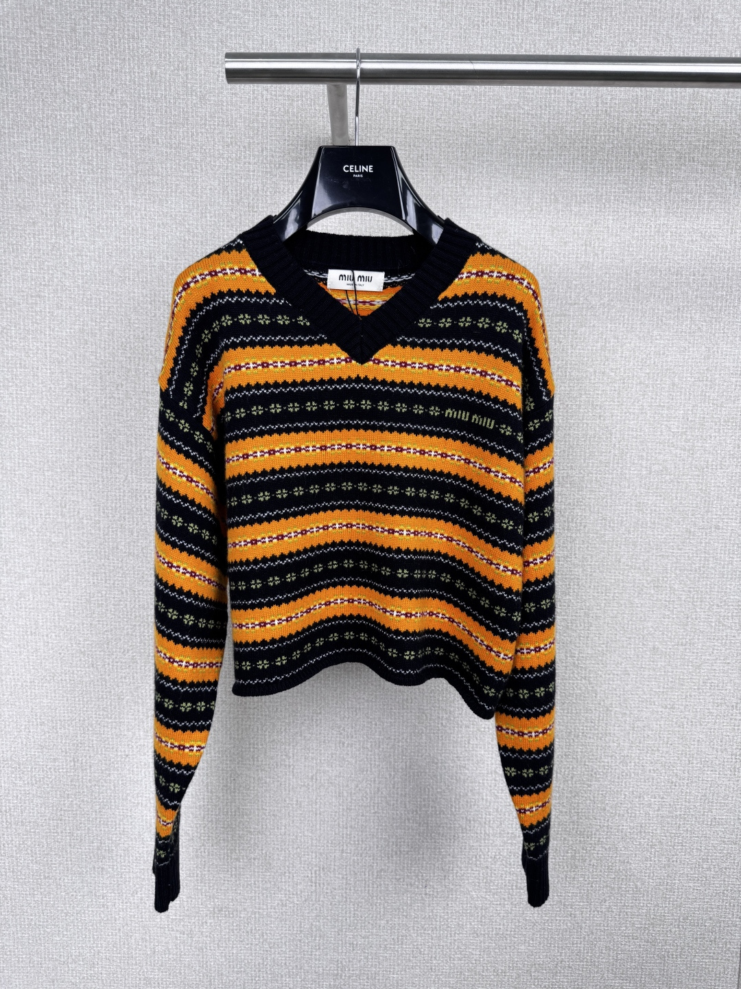 这款衣服是AAAAA 1:1 质量 (非常棒). 使用了和原版一模一样的材料. 商标部分也保持了和缪缪/Miu Miu一样. 图片拍摄是实物衣服拍摄, 您所收到的实物保证和我们图片一模一样.
