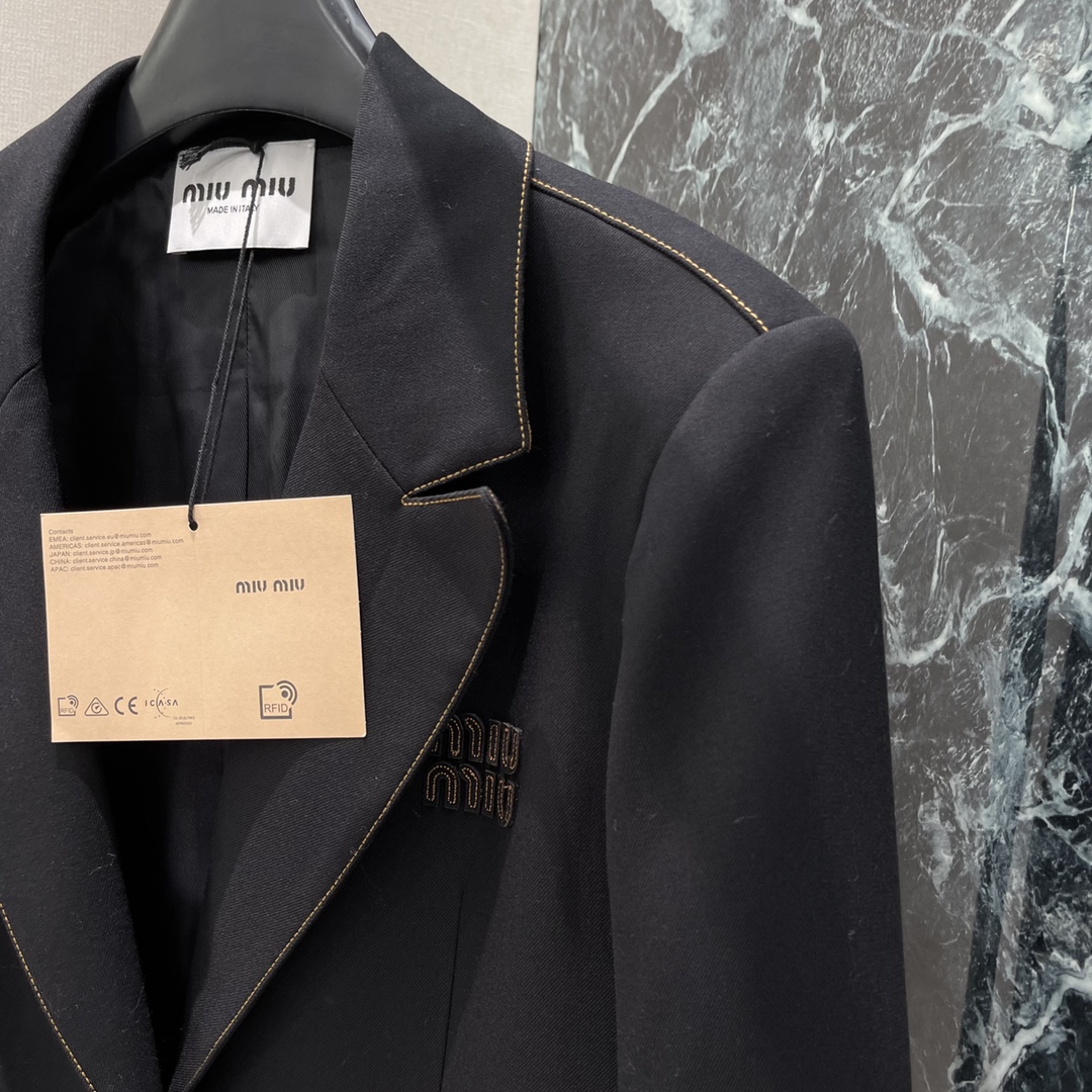 这款衣服是AAAAA 1:1 质量 (非常棒). 使用了和原版一模一样的材料. 商标部分也保持了和缪缪/Miu Miu一样. 图片拍摄是实物衣服拍摄, 您所收到的实物保证和我们图片一模一样.