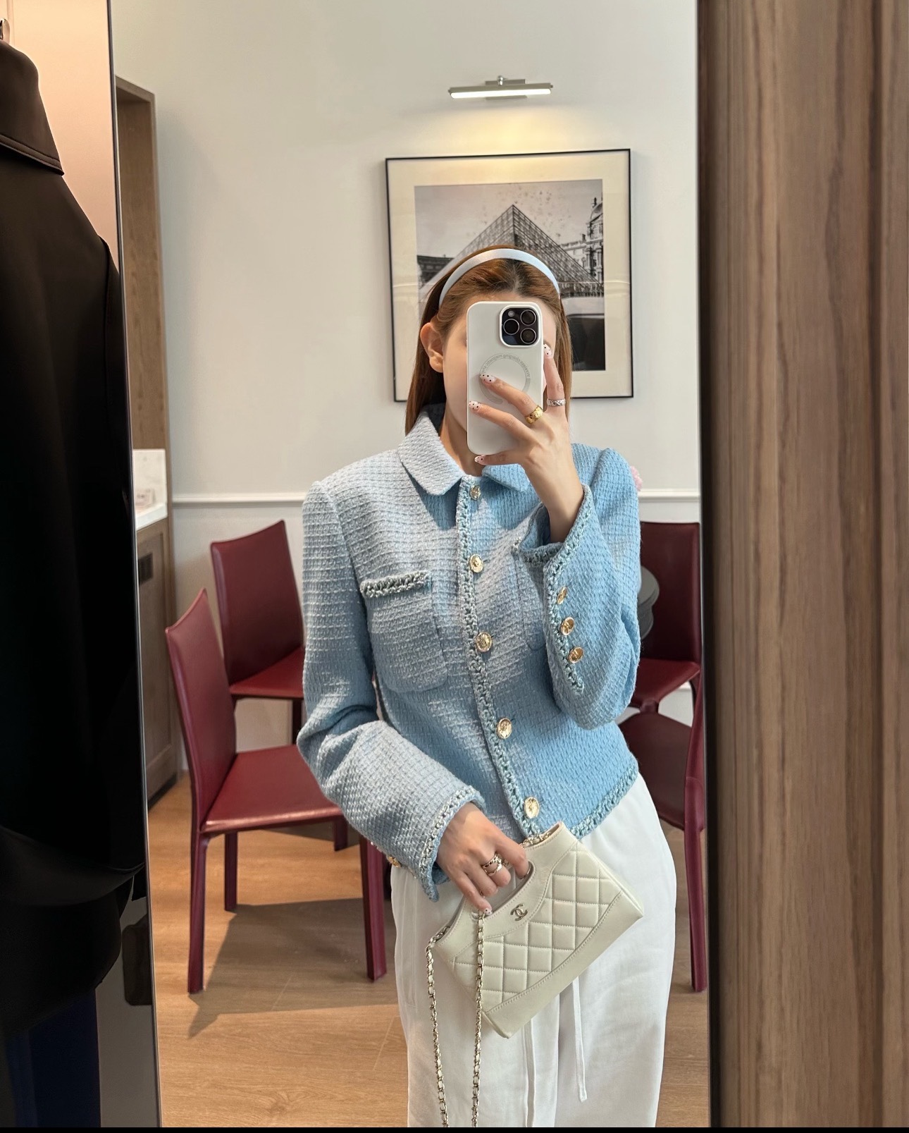 这款衣服是AAAAA 1:1 质量 (非常棒). 使用了和原版一模一样的材料. 商标部分也保持了和香奈儿/Chanel一样. 图片拍摄是实物衣服拍摄, 您所收到的实物保证和我们图片一模一样.