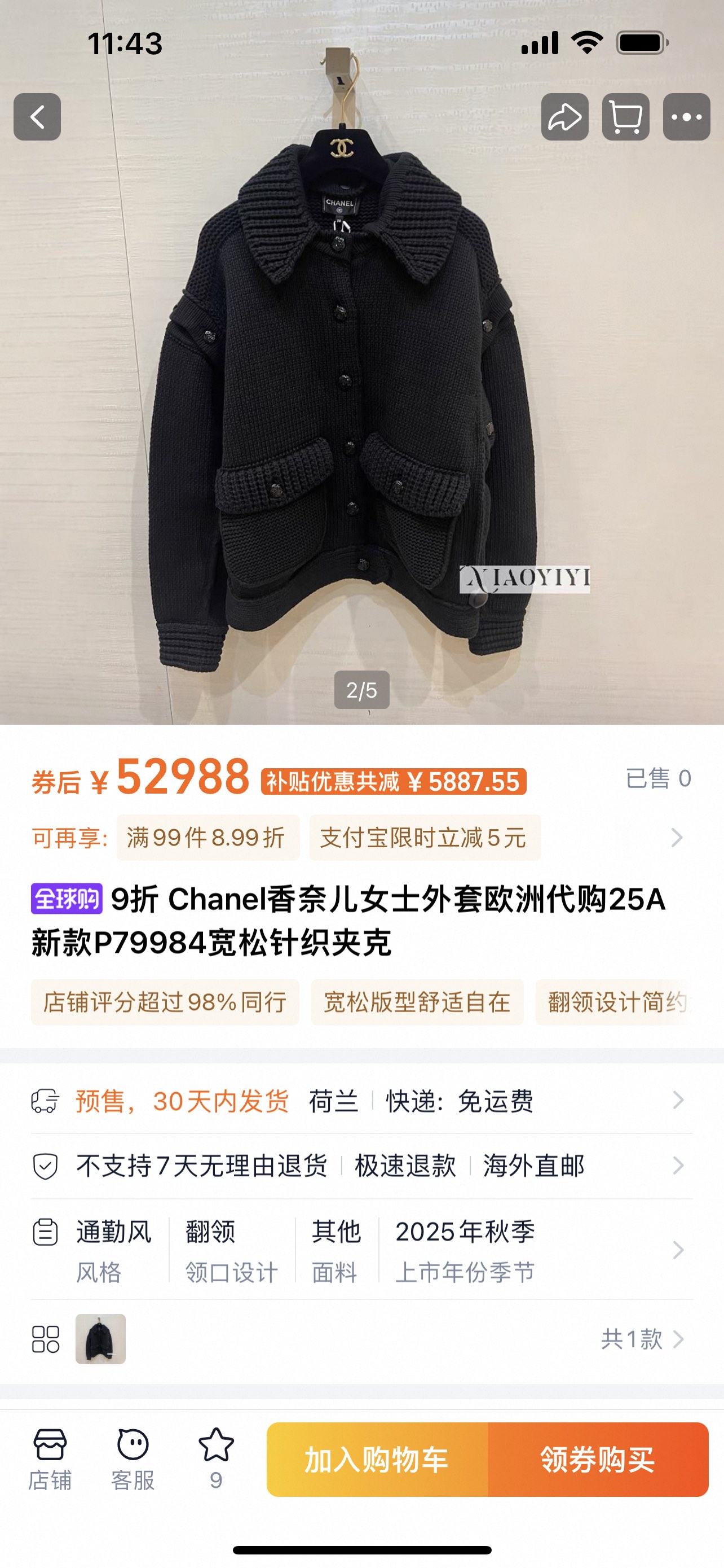 这款衣服是AAAAA 1:1 质量 (非常棒). 使用了和原版一模一样的材料. 商标部分也保持了和香奈儿/Chanel一样. 图片拍摄是实物衣服拍摄, 您所收到的实物保证和我们图片一模一样.