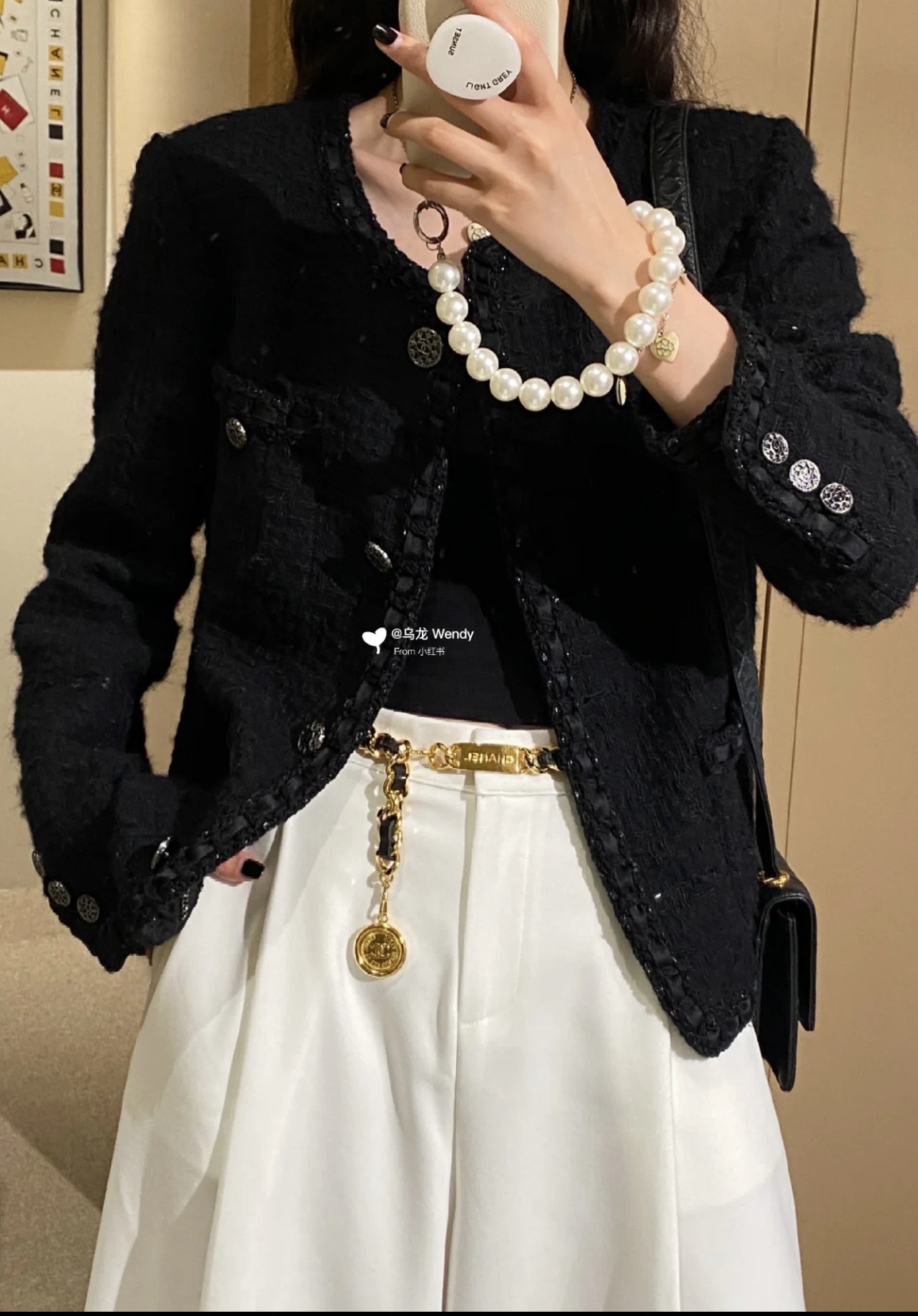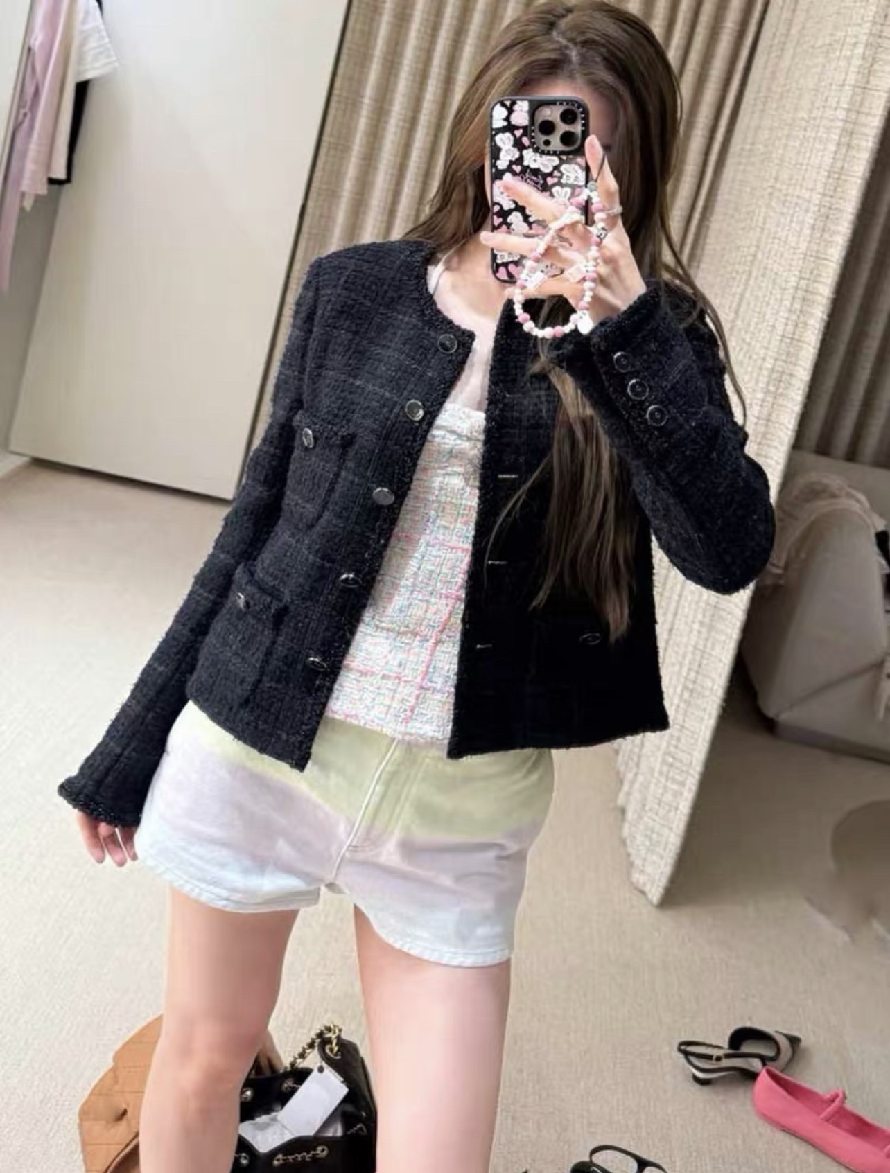 这款衣服是AAAAA 1:1 质量 (非常棒). 使用了和原版一模一样的材料. 商标部分也保持了和香奈儿/Chanel一样. 图片拍摄是实物衣服拍摄, 您所收到的实物保证和我们图片一模一样.