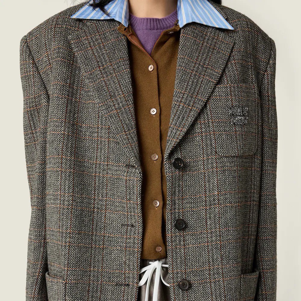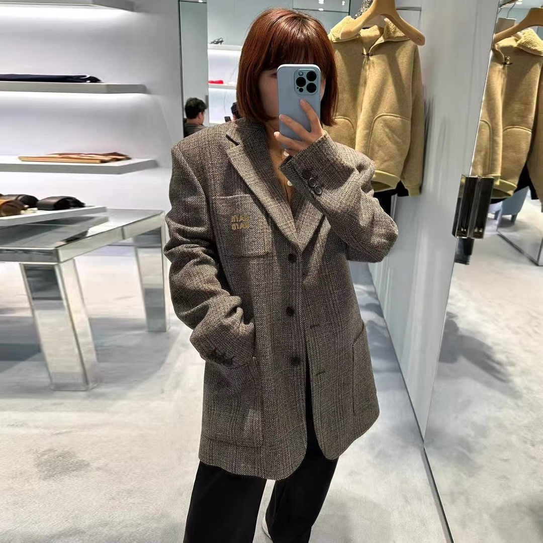 这款衣服是AAAAA 1:1 质量 (非常棒). 使用了和原版一模一样的材料. 商标部分也保持了和缪缪/Miu Miu一样. 图片拍摄是实物衣服拍摄, 您所收到的实物保证和我们图片一模一样.