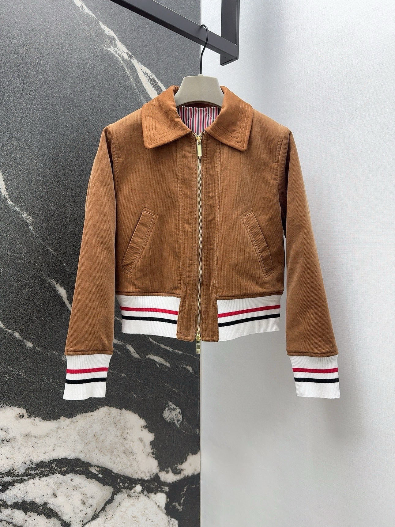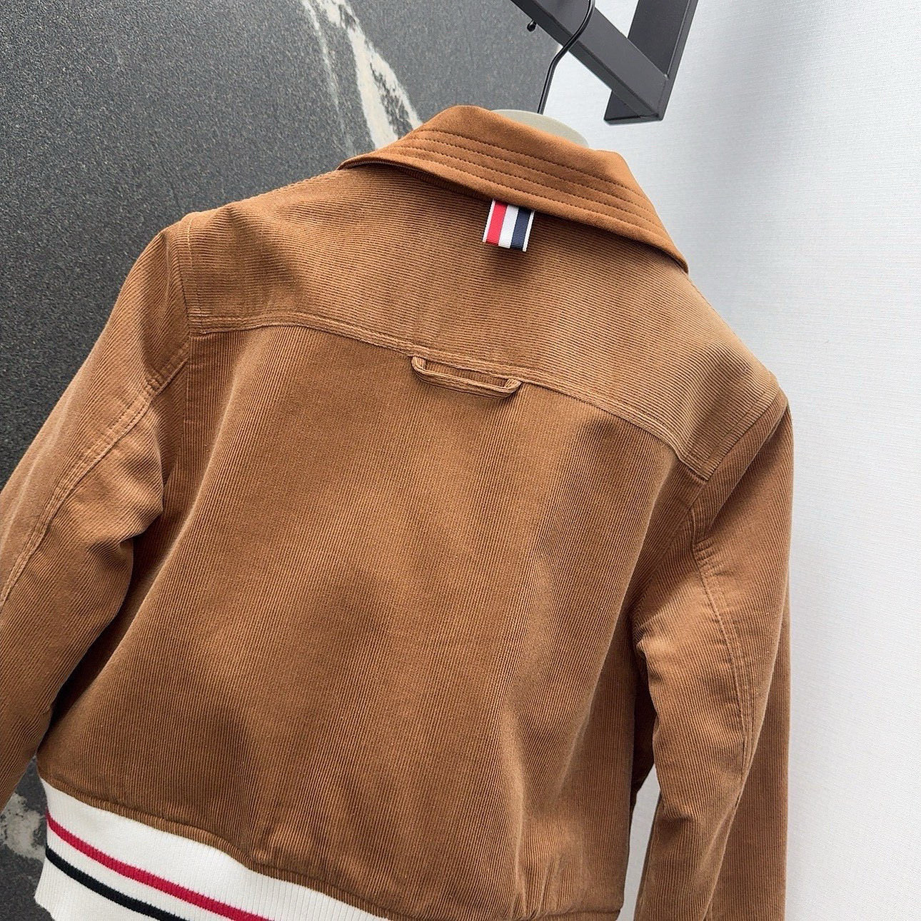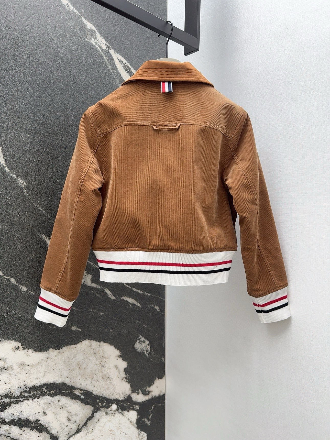 这款衣服是AAAAA 1:1 质量 (非常棒). 使用了和原版一模一样的材料. 商标部分也保持了和汤姆布朗/Thom Browne一样. 图片拍摄是实物衣服拍摄, 您所收到的实物保证和我们图片一模一样.