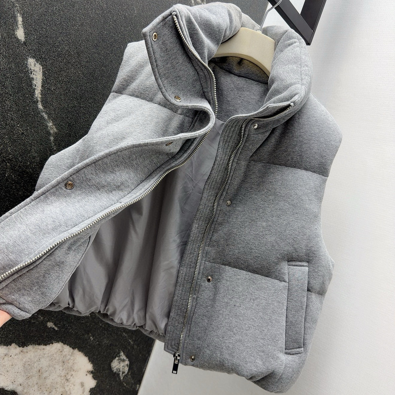 这款衣服是AAAAA 1:1 质量 (非常棒). 使用了和原版一模一样的材料. 商标部分也保持了和Brunello Cucinelli一样. 图片拍摄是实物衣服拍摄, 您所收到的实物保证和我们图片一模一样.