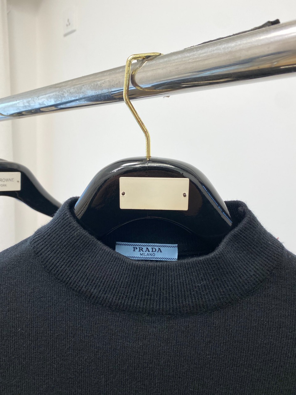 这款衣服是AAAAA 1:1 质量 (非常棒). 使用了和原版一模一样的材料. 商标部分也保持了和普拉达/Prada一样. 图片拍摄是实物衣服拍摄, 您所收到的实物保证和我们图片一模一样.