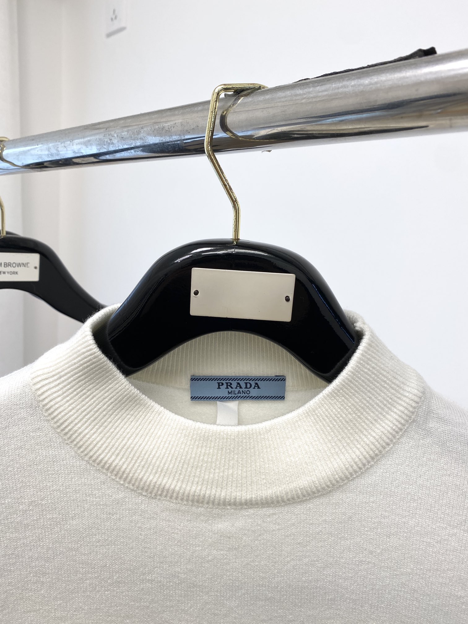 这款衣服是AAAAA 1:1 质量 (非常棒). 使用了和原版一模一样的材料. 商标部分也保持了和普拉达/Prada一样. 图片拍摄是实物衣服拍摄, 您所收到的实物保证和我们图片一模一样.