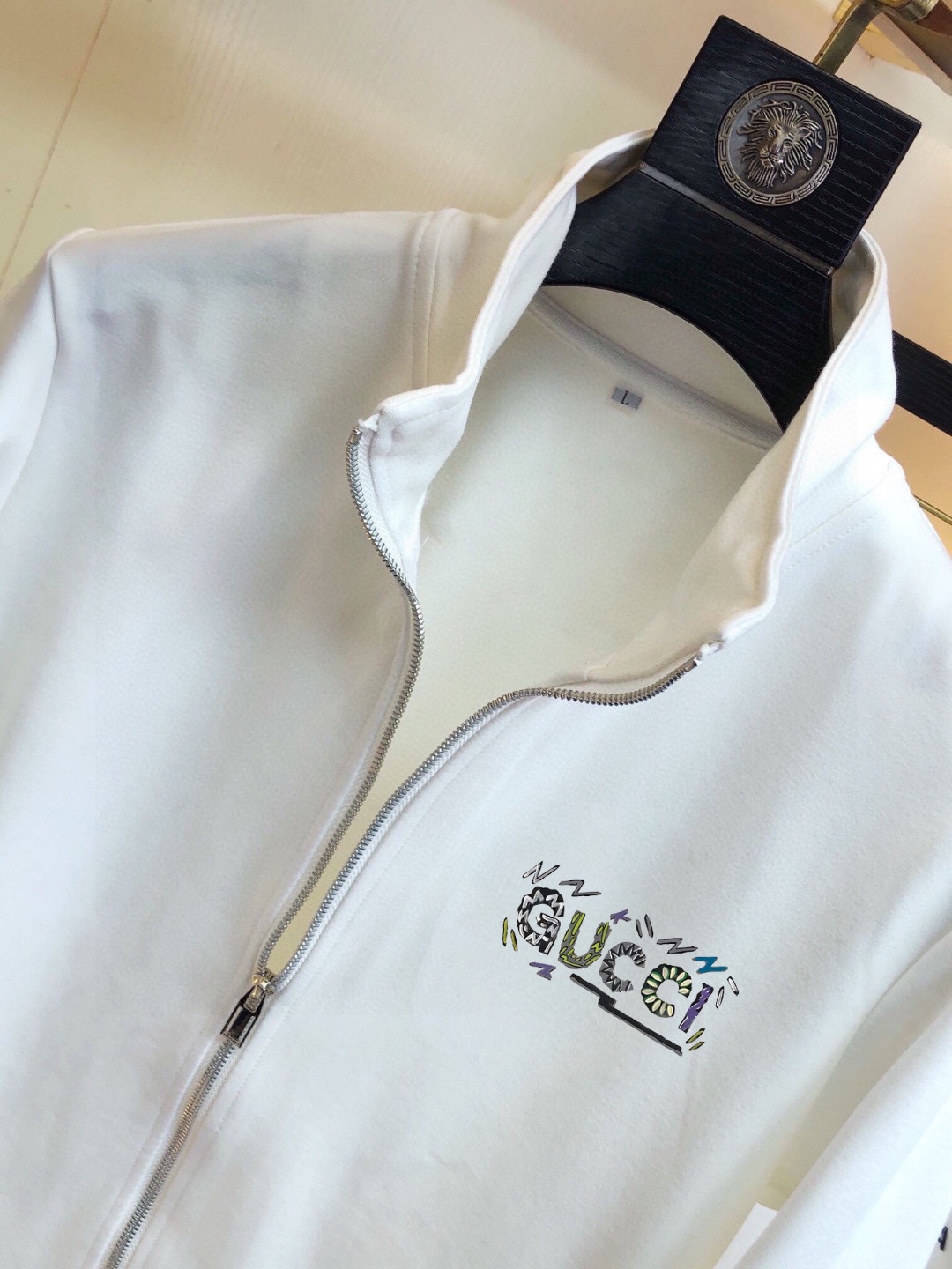 这款衣服是AAAAA 1:1 质量 (非常棒). 使用了和原版一模一样的材料. 商标部分也保持了和古奇/Gucci一样. 图片拍摄是实物衣服拍摄, 您所收到的实物保证和我们图片一模一样.
