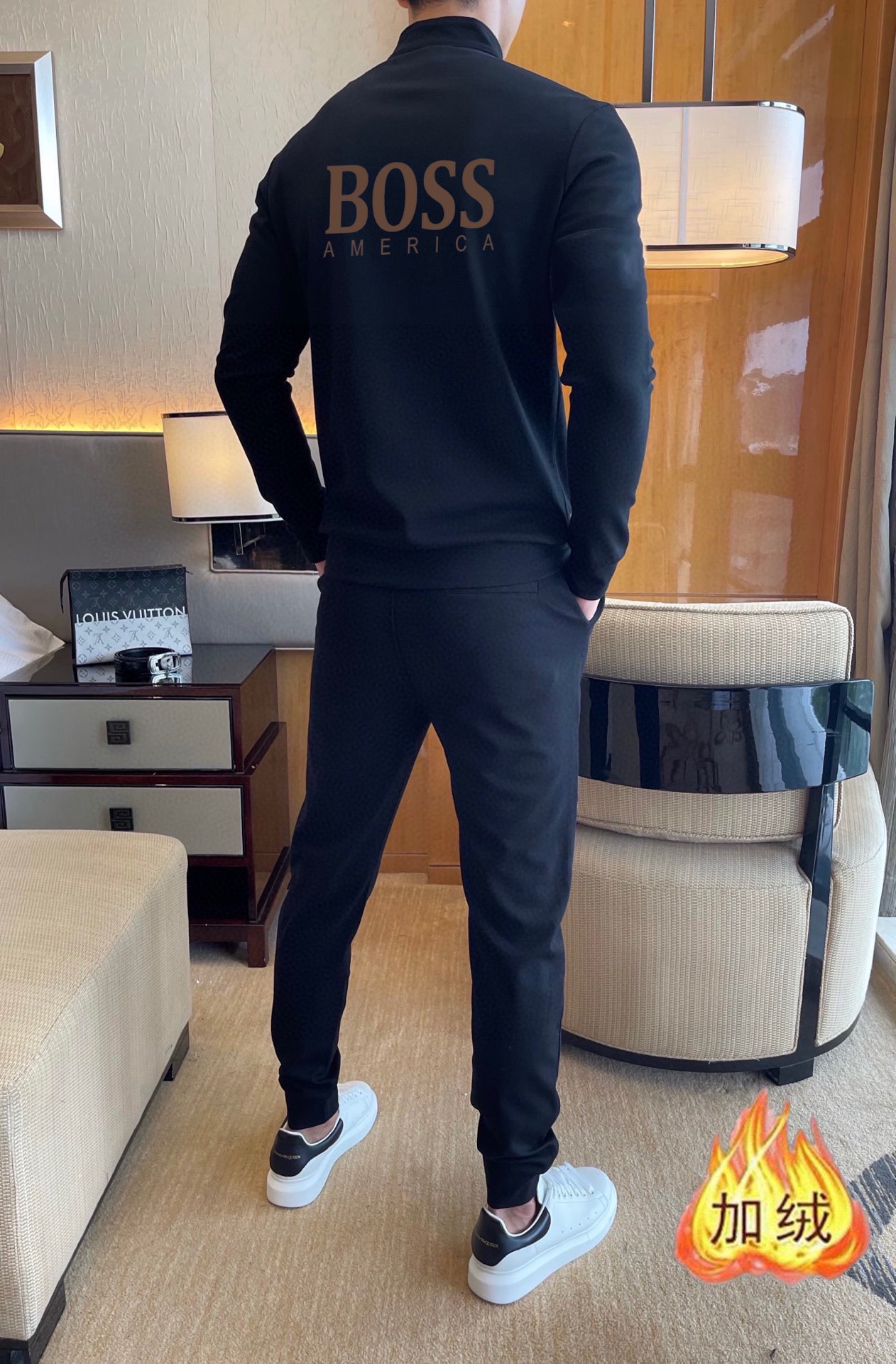 这款衣服是AAAAA 1:1 质量 (非常棒). 使用了和原版一模一样的材料. 商标部分也保持了和BOSS一样. 图片拍摄是实物衣服拍摄, 您所收到的实物保证和我们图片一模一样.