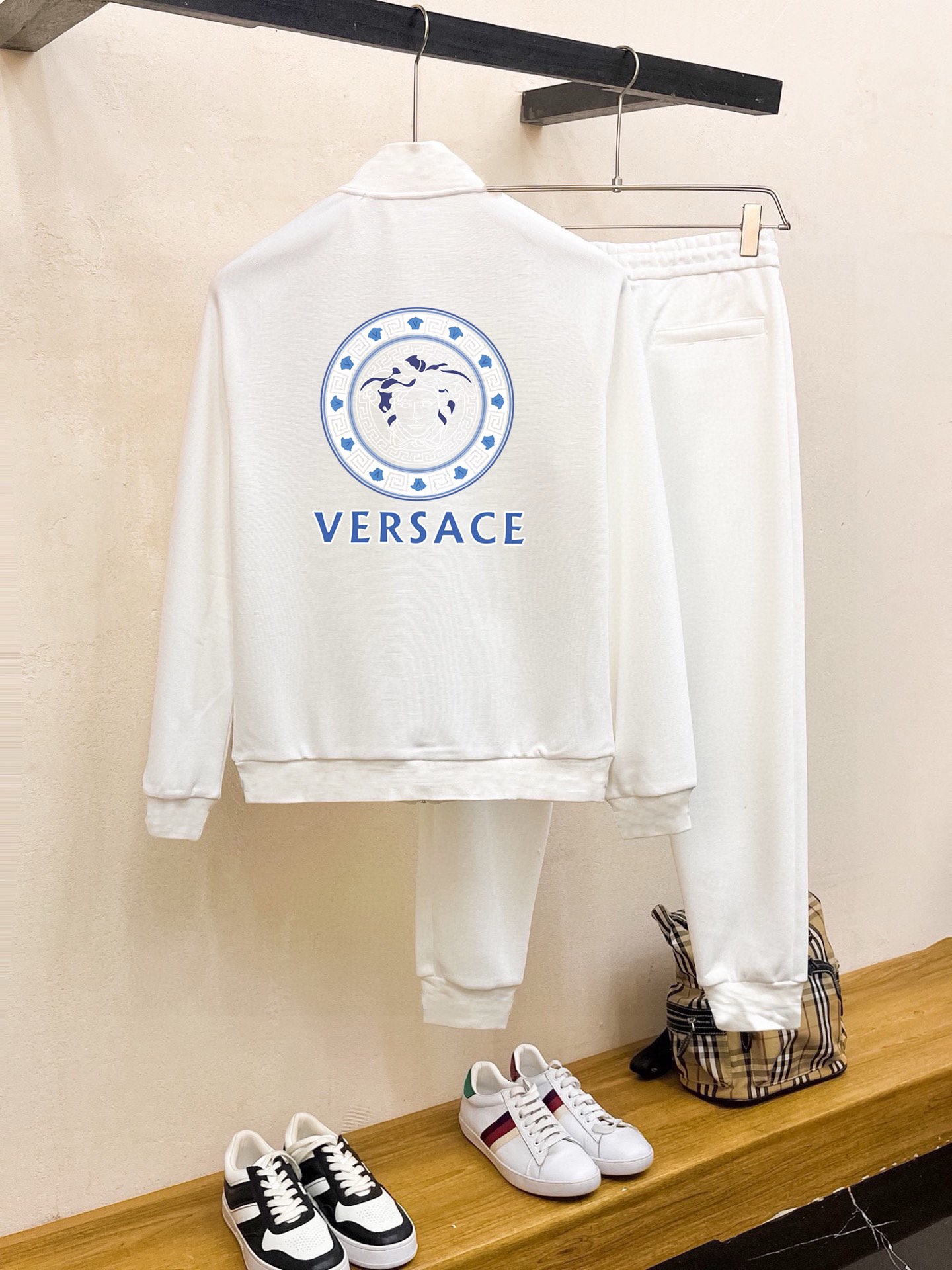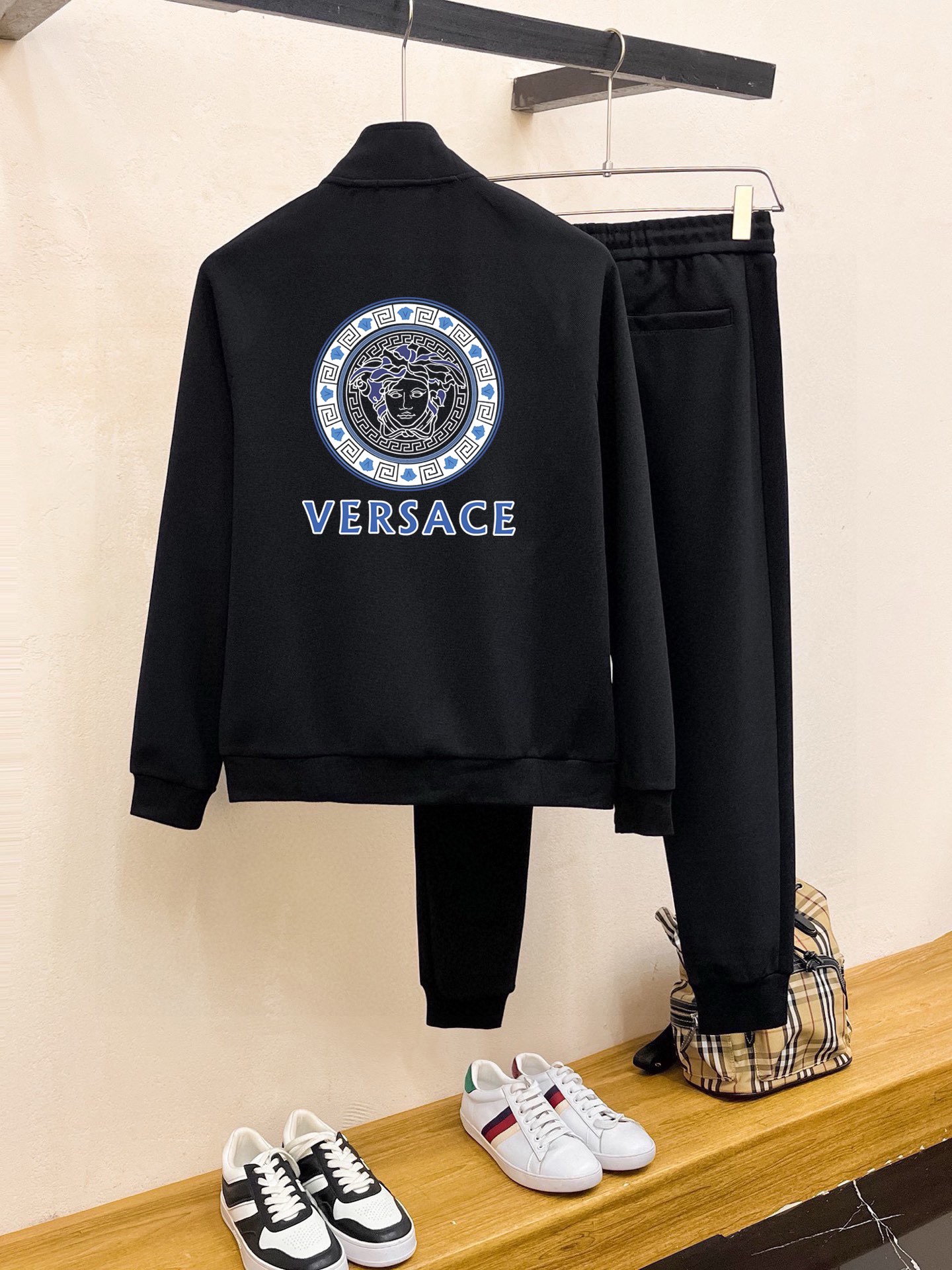 这款衣服是AAAAA 1:1 质量 (非常棒). 使用了和原版一模一样的材料. 商标部分也保持了和范思哲/Versace一样. 图片拍摄是实物衣服拍摄, 您所收到的实物保证和我们图片一模一样.