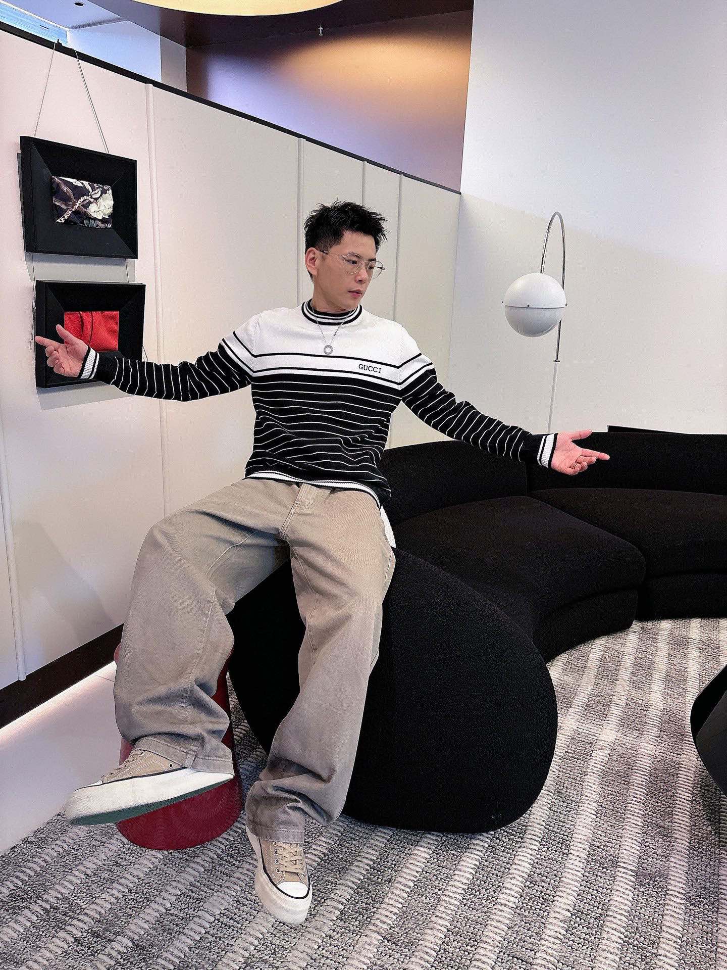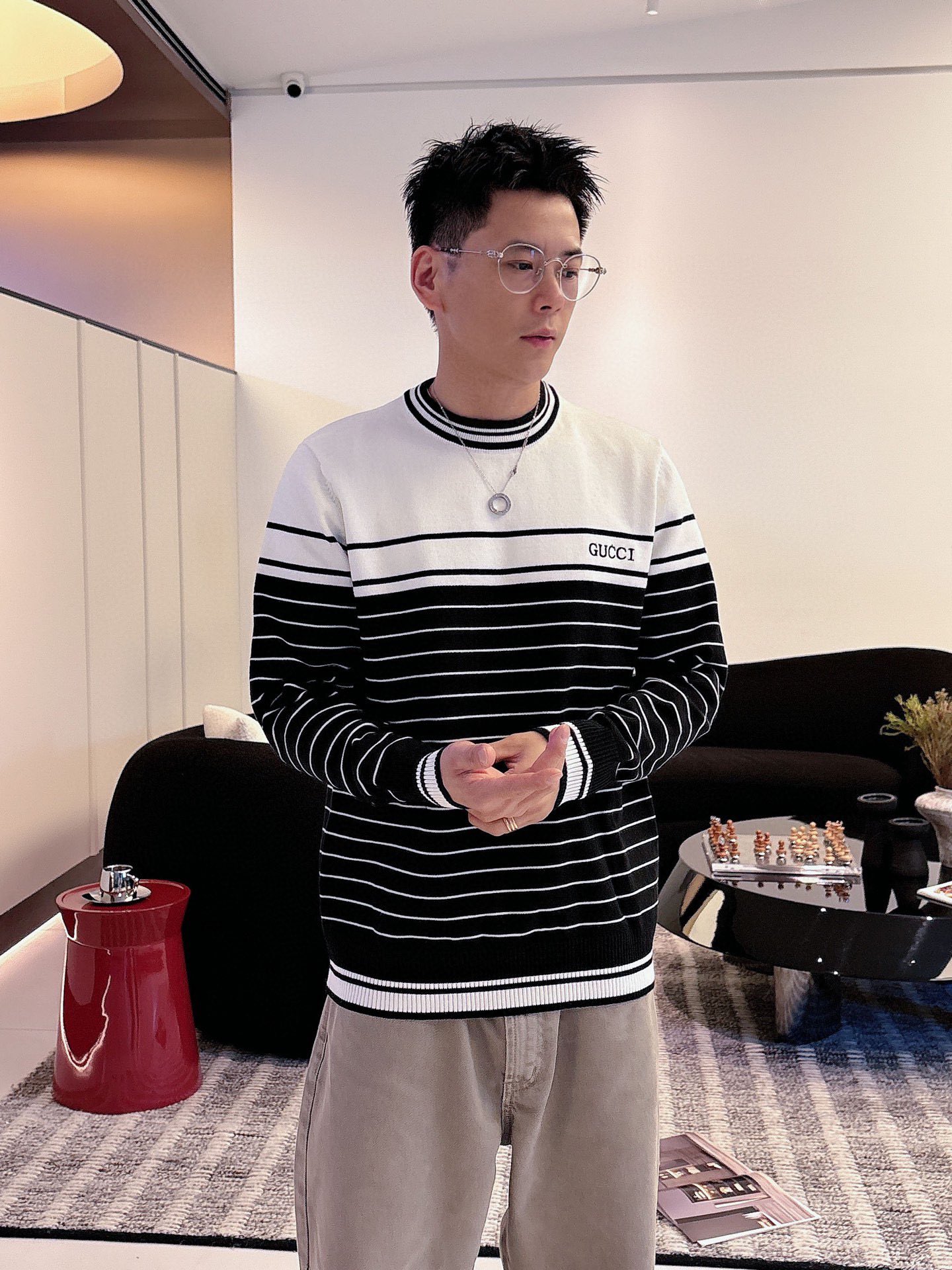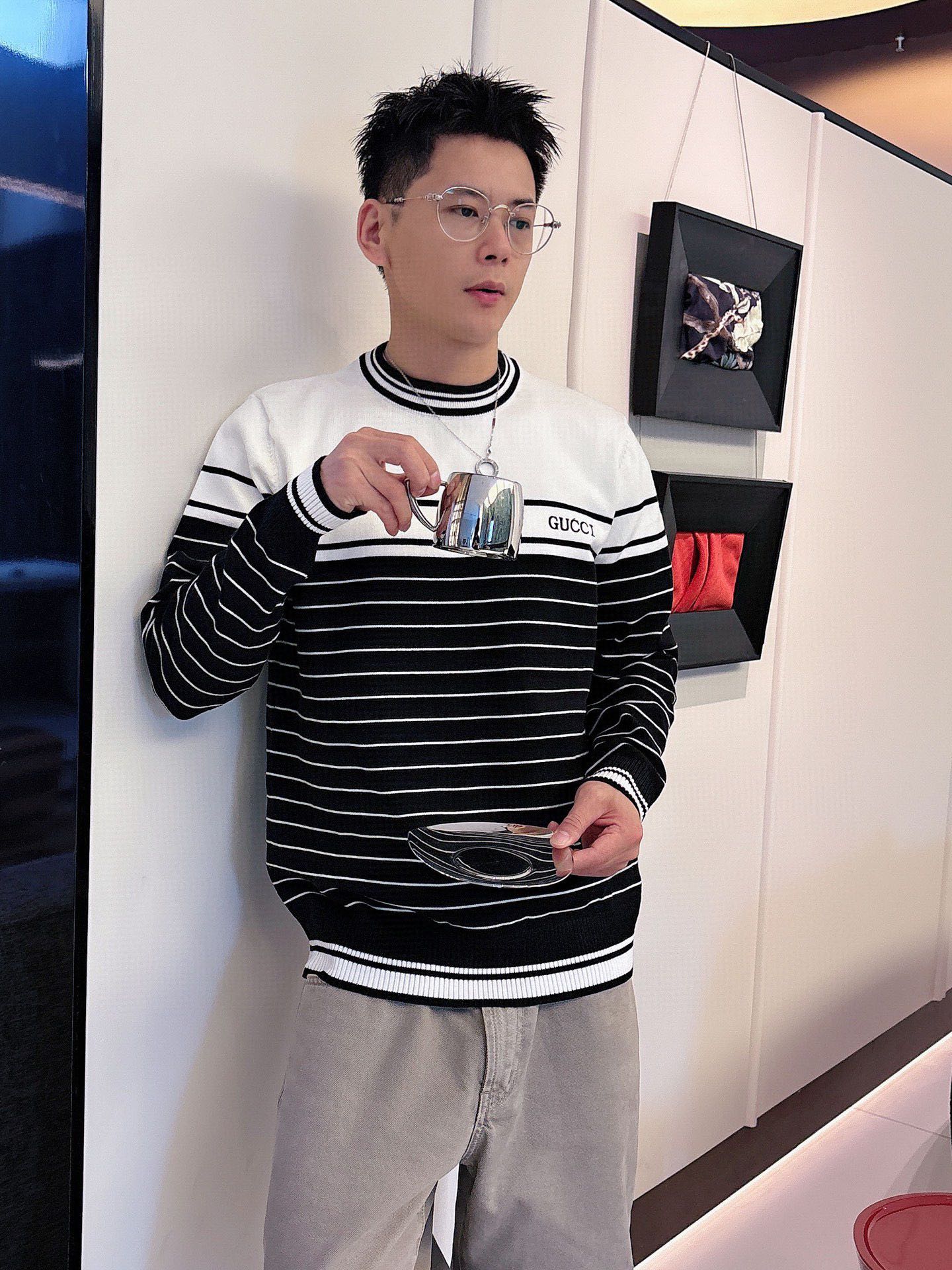 这款衣服是AAAAA 1:1 质量 (非常棒). 使用了和原版一模一样的材料. 商标部分也保持了和古奇/Gucci一样. 图片拍摄是实物衣服拍摄, 您所收到的实物保证和我们图片一模一样.