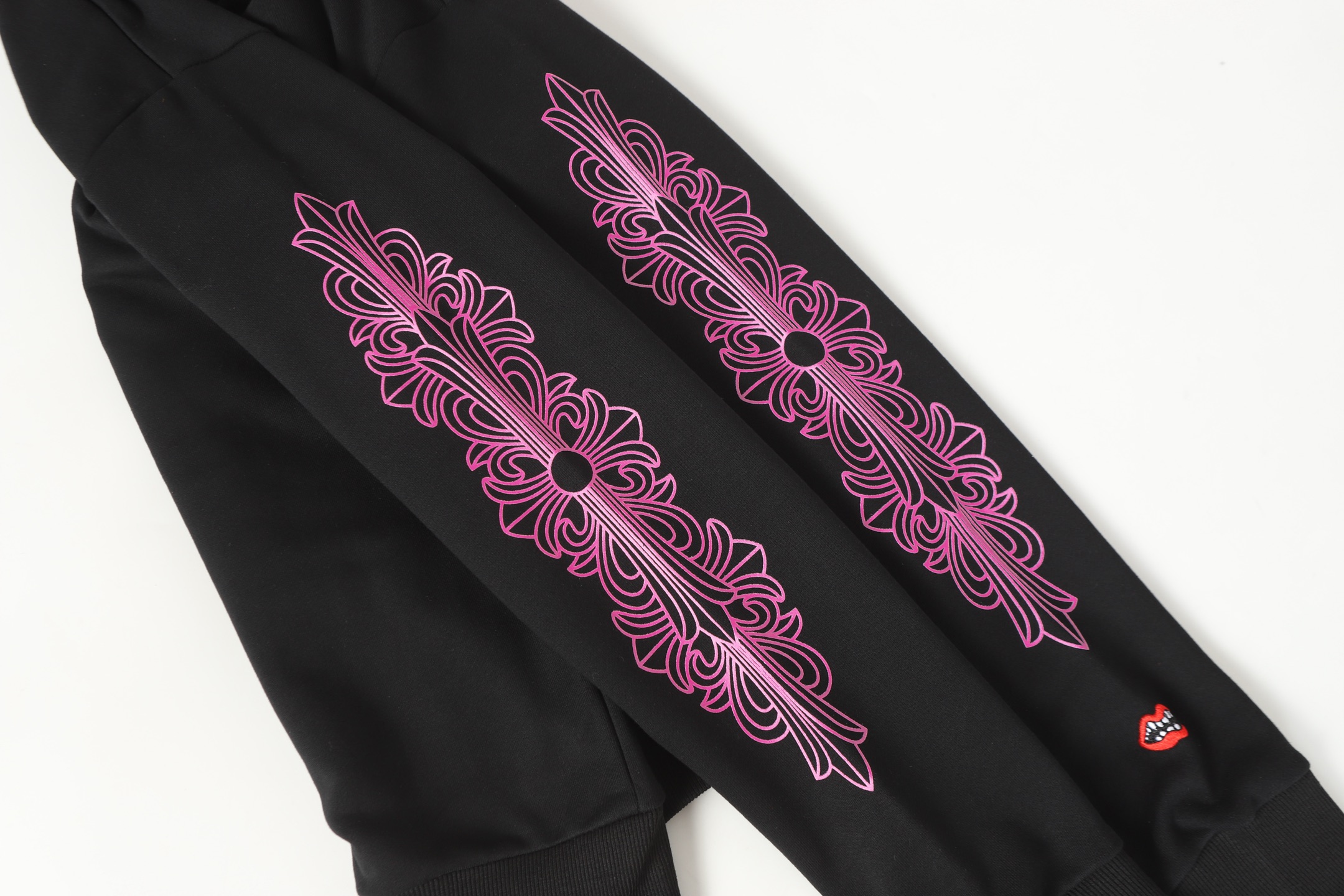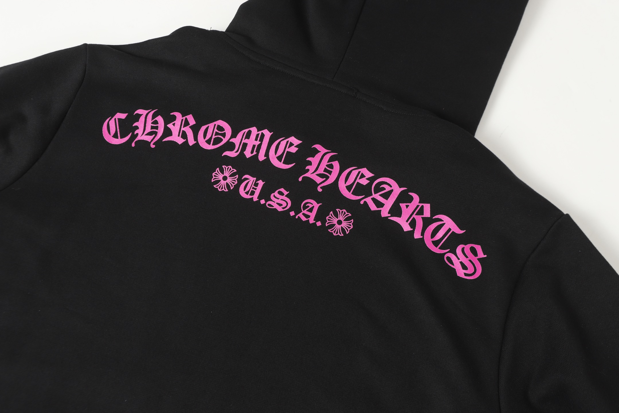 这款衣服是AAAAA 1:1 质量 (非常棒). 使用了和原版一模一样的材料. 商标部分也保持了和克罗心/Chrome Hearts一样. 图片拍摄是实物衣服拍摄, 您所收到的实物保证和我们图片一模一样.