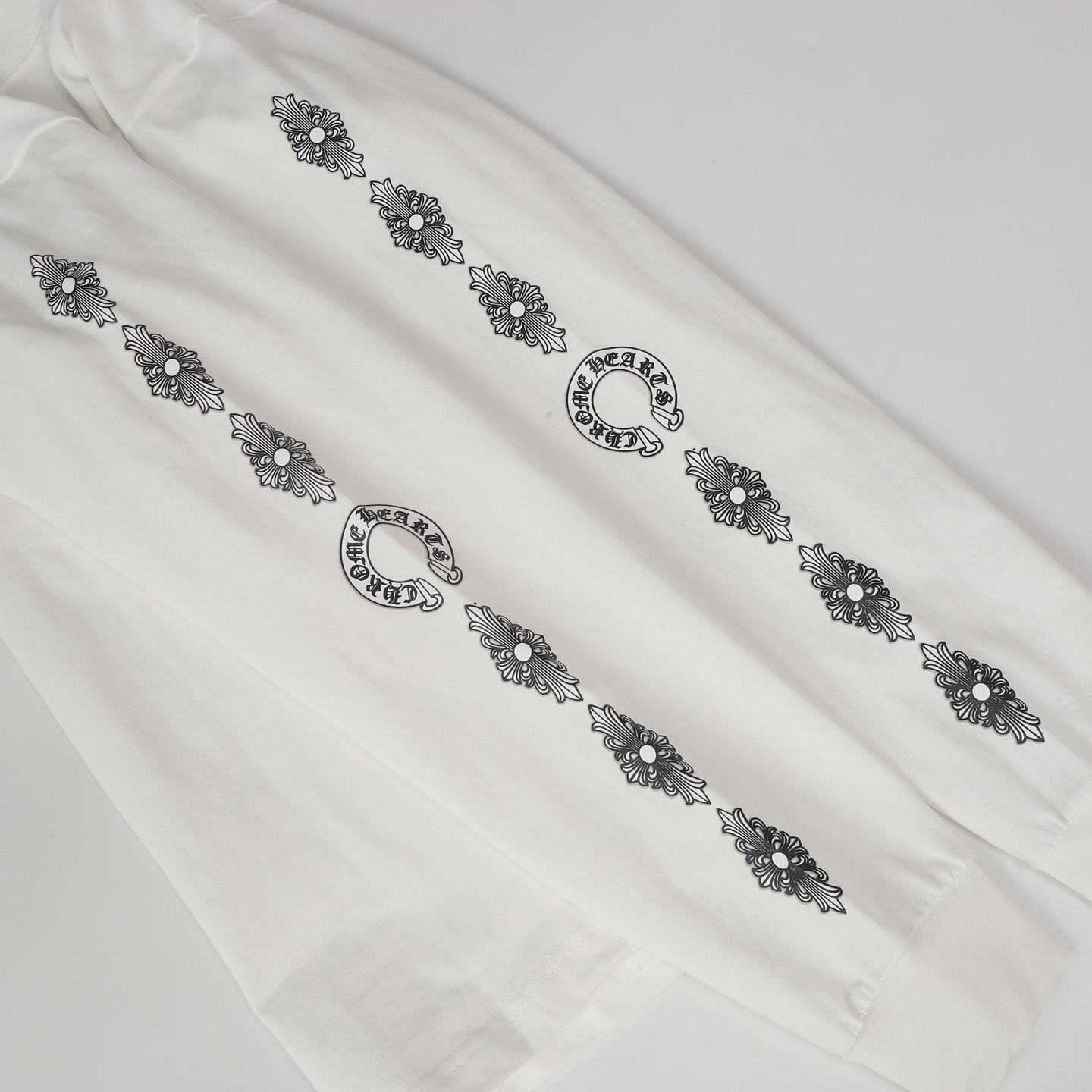 这款衣服是AAAAA 1:1 质量 (非常棒). 使用了和原版一模一样的材料. 商标部分也保持了和克罗心/Chrome Hearts一样. 图片拍摄是实物衣服拍摄, 您所收到的实物保证和我们图片一模一样.