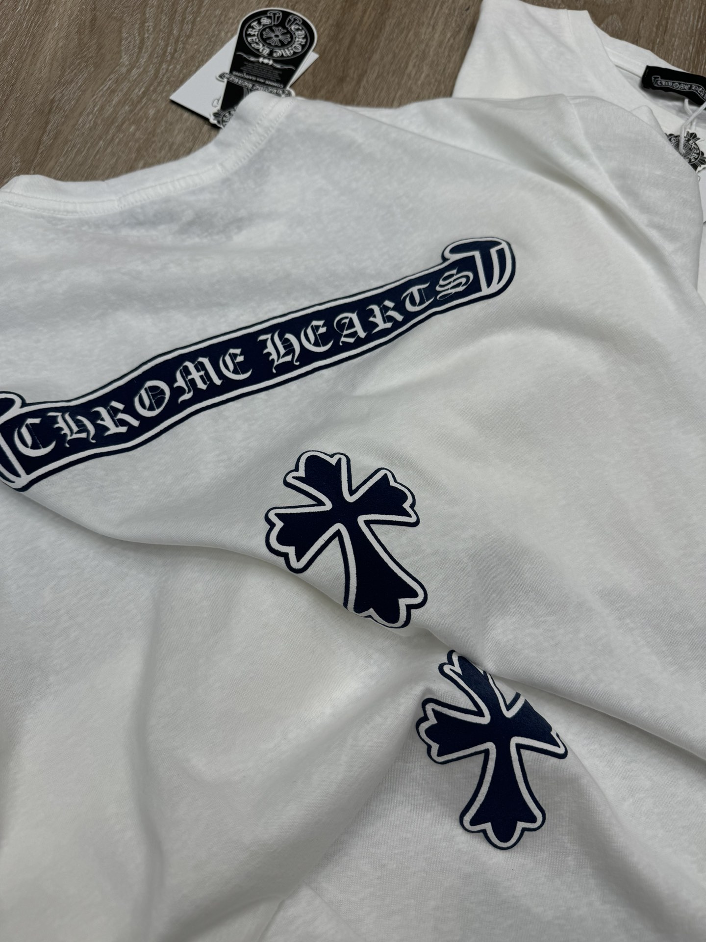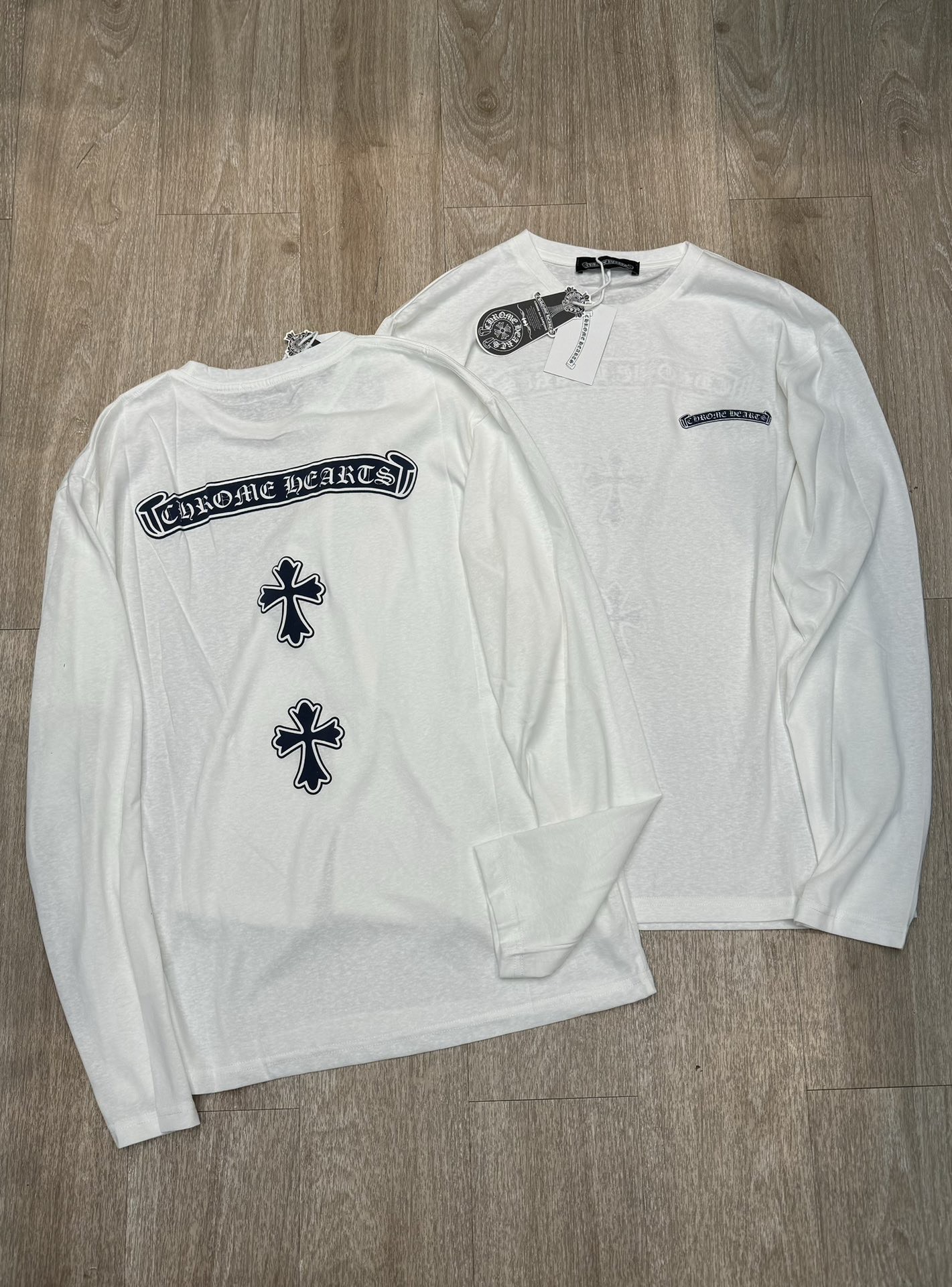 这款衣服是AAAAA 1:1 质量 (非常棒). 使用了和原版一模一样的材料. 商标部分也保持了和克罗心/Chrome Hearts一样. 图片拍摄是实物衣服拍摄, 您所收到的实物保证和我们图片一模一样.