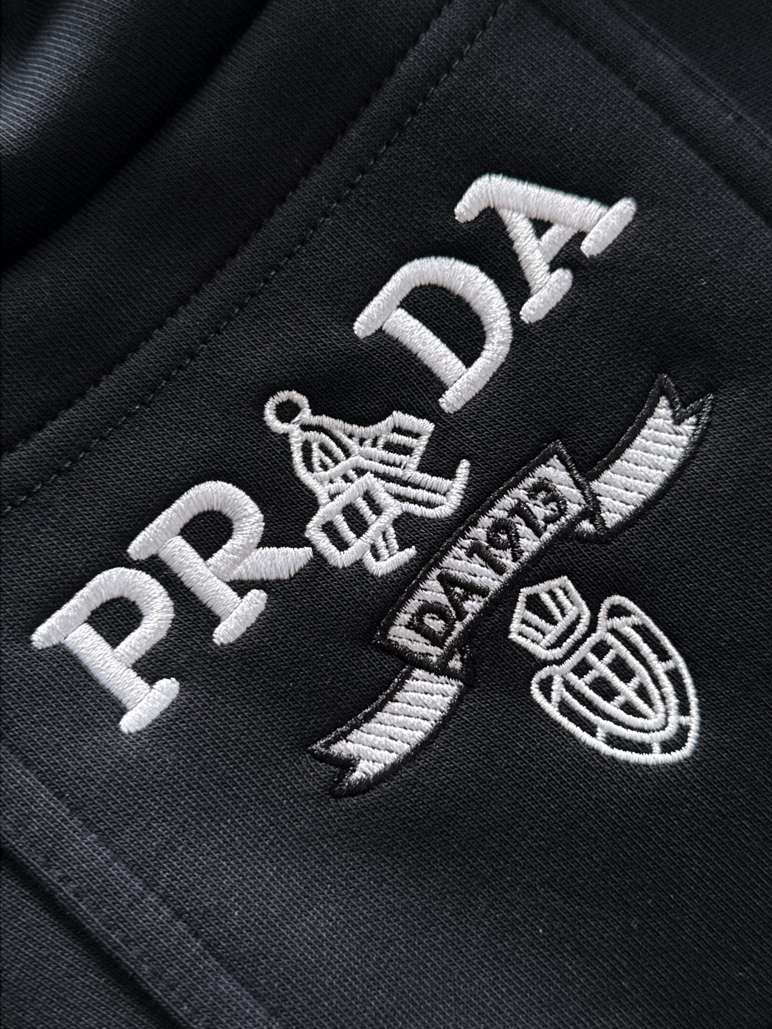 这款衣服是AAAAA 1:1 质量 (非常棒). 使用了和原版一模一样的材料. 商标部分也保持了和普拉达/Prada一样. 图片拍摄是实物衣服拍摄, 您所收到的实物保证和我们图片一模一样.