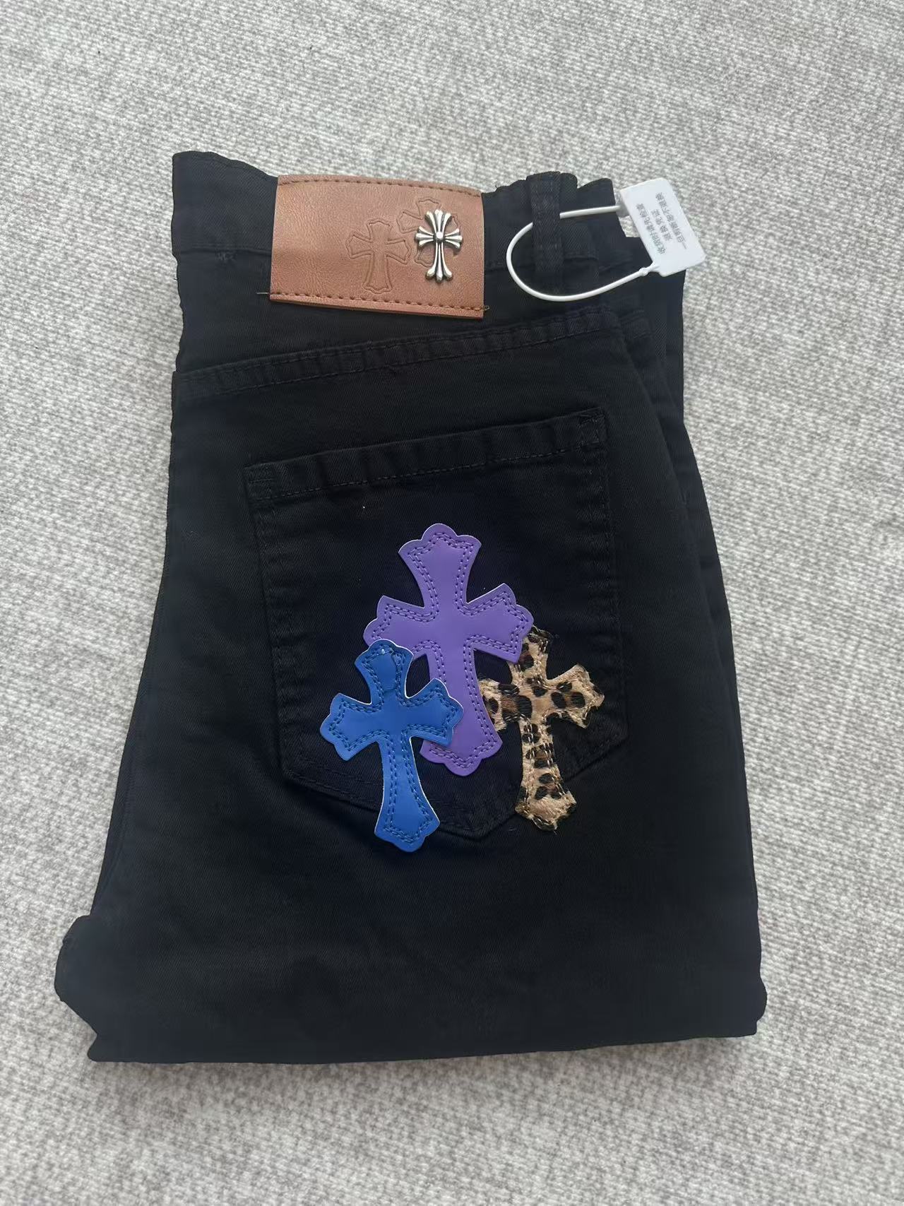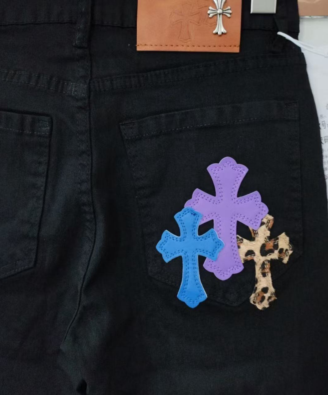 这款衣服是AAAAA 1:1 质量 (非常棒). 使用了和原版一模一样的材料. 商标部分也保持了和克罗心/Chrome Hearts一样. 图片拍摄是实物衣服拍摄, 您所收到的实物保证和我们图片一模一样.