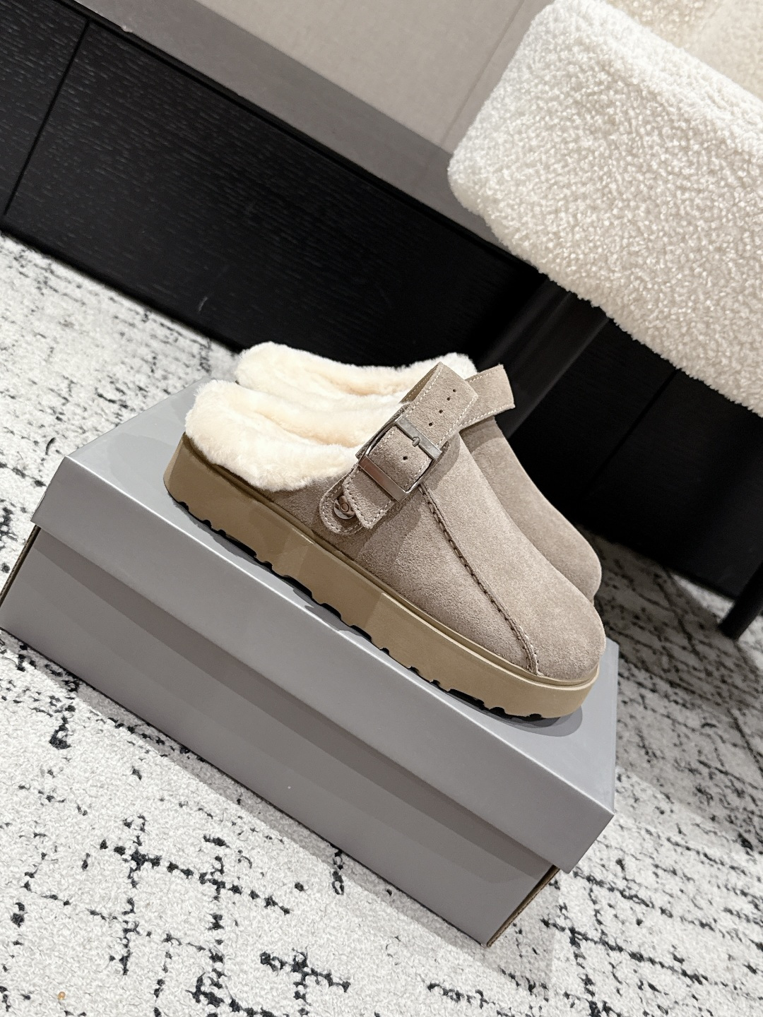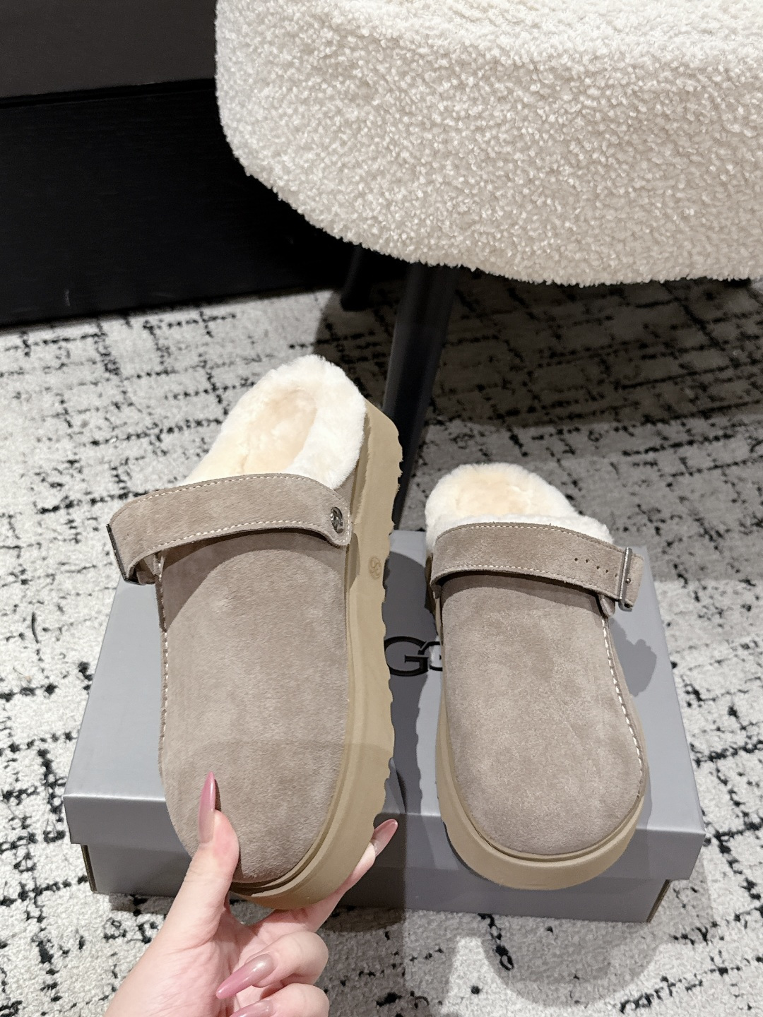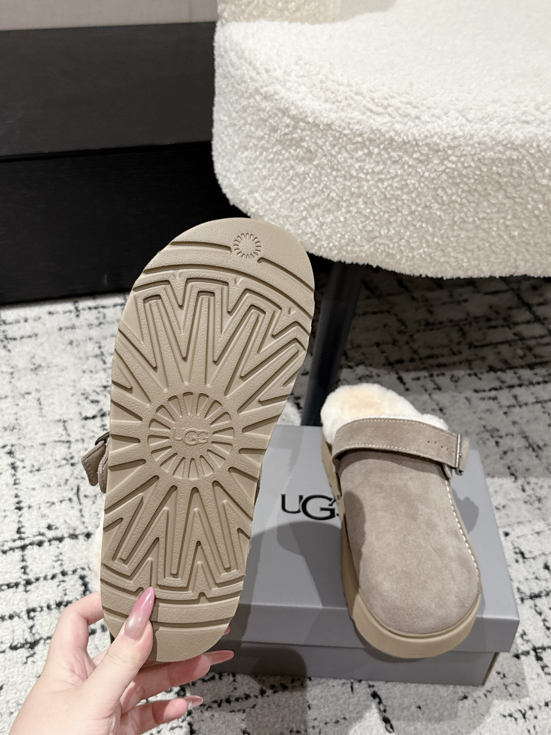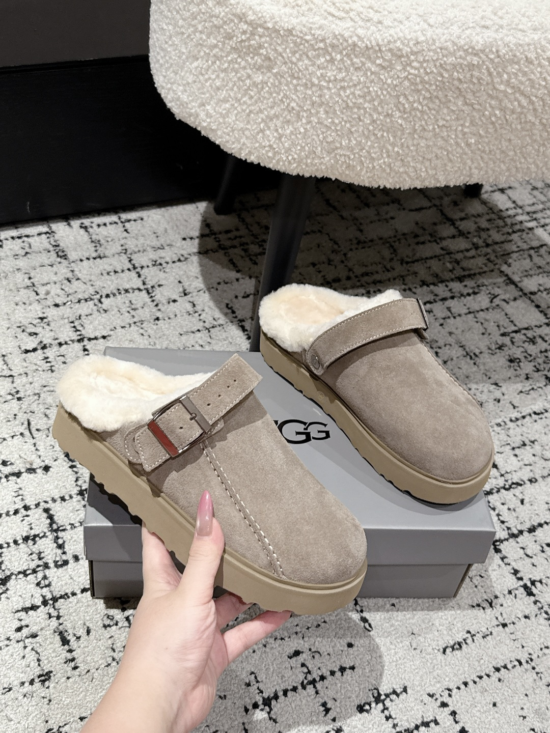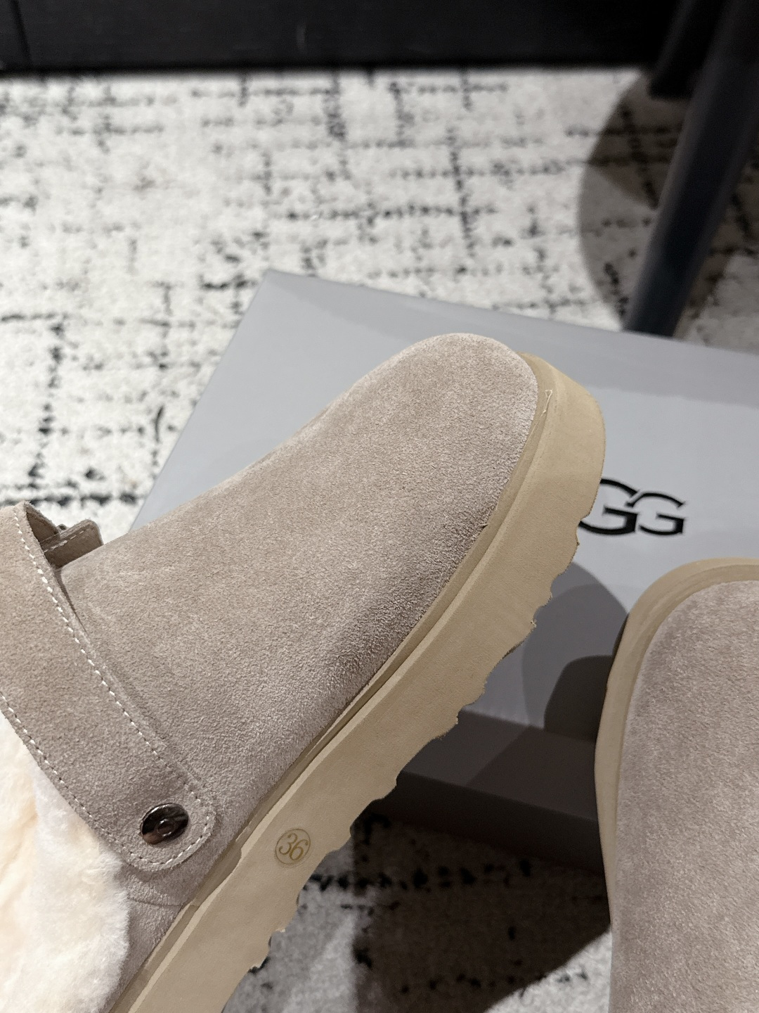 这款鞋子是AAAAA 1:1 质量 (非常棒). 使用了和原版一模一样的材料. 商标部分也保持了和UGG雪地靴一样. 图片拍摄是实物鞋子拍摄, 您所收到的实物保证和我们图片一模一样.