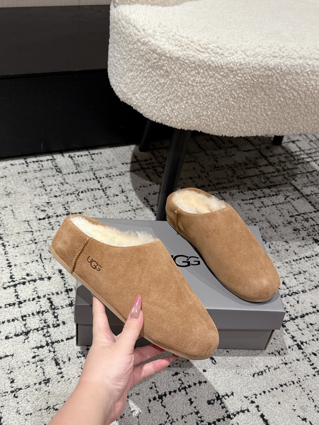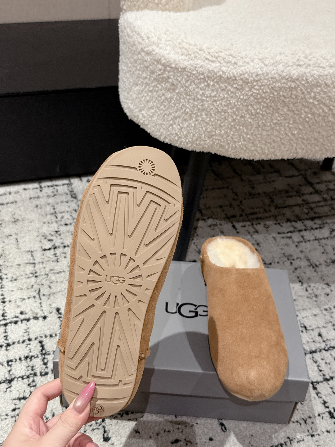 这款鞋子是AAAAA 1:1 质量 (非常棒). 使用了和原版一模一样的材料. 商标部分也保持了和UGG雪地靴一样. 图片拍摄是实物鞋子拍摄, 您所收到的实物保证和我们图片一模一样.