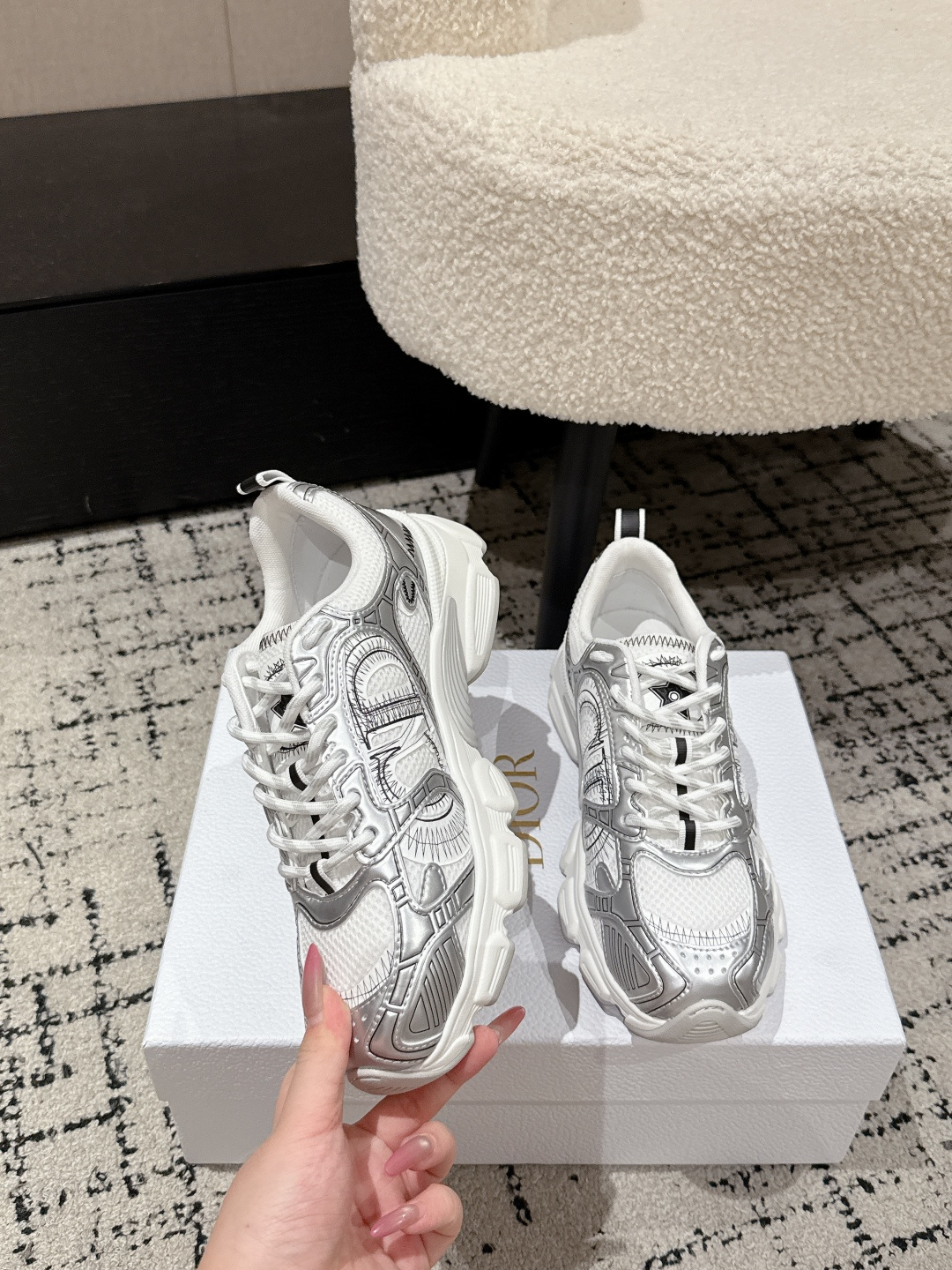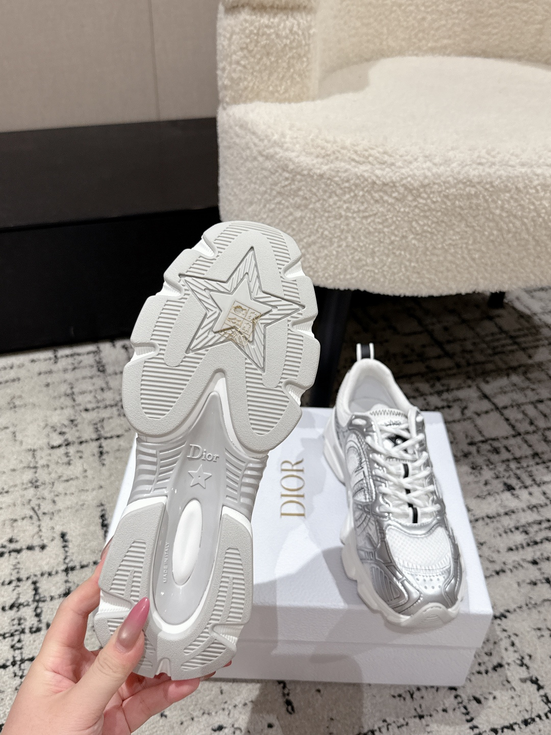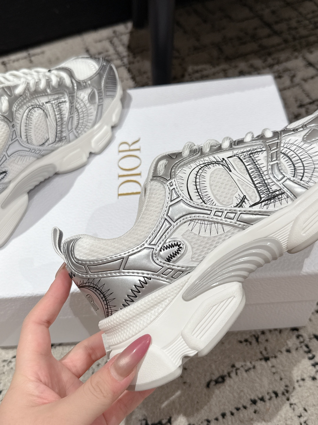 这款鞋子是AAAAA 1:1 质量 (非常棒). 使用了和原版一模一样的材料. 商标部分也保持了和迪奥/Dior一样. 图片拍摄是实物鞋子拍摄, 您所收到的实物保证和我们图片一模一样.