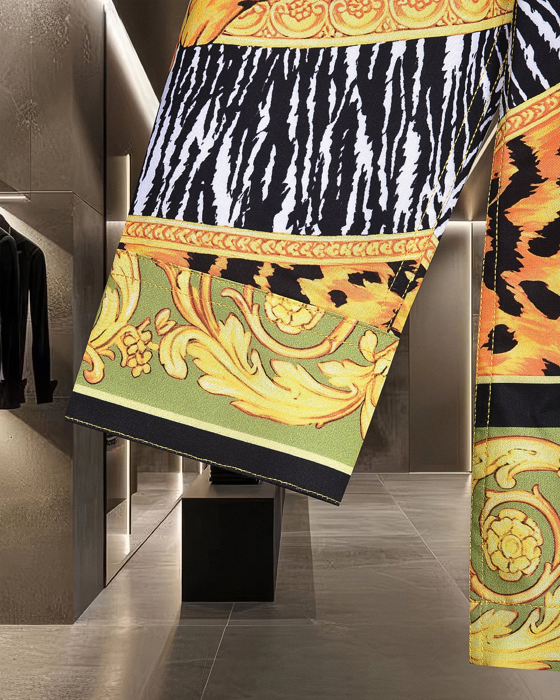 这款衣服是AAAAA 1:1 质量 (非常棒). 使用了和原版一模一样的材料. 商标部分也保持了和范思哲/Versace一样. 图片拍摄是实物衣服拍摄, 您所收到的实物保证和我们图片一模一样.