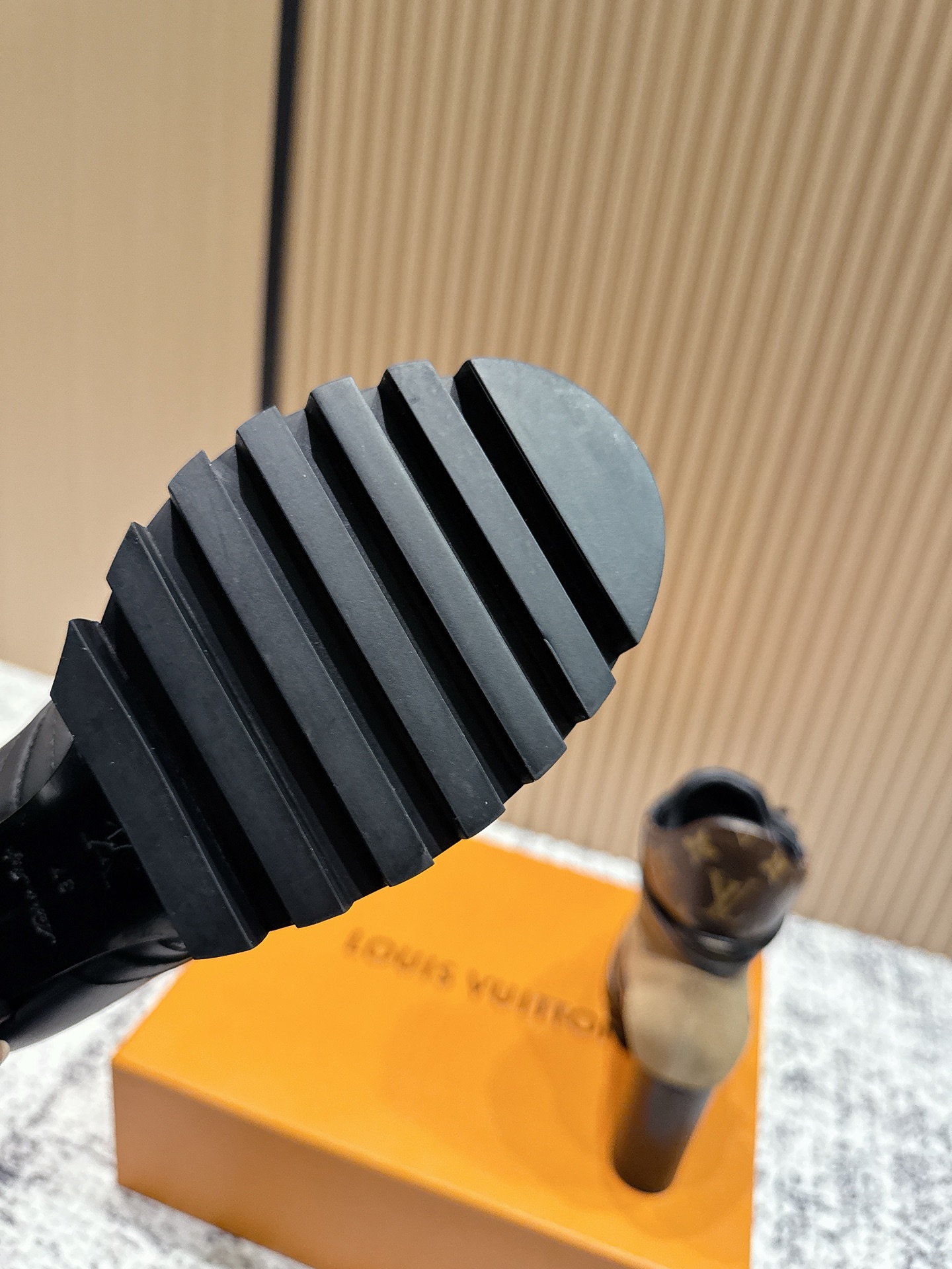 这款鞋子是AAAAA 1:1 质量 (非常棒). 使用了和原版一模一样的材料. 商标部分也保持了和路易威登/Louis Vuitton一样. 图片拍摄是实物鞋子拍摄, 您所收到的实物保证和我们图片一模一样.
