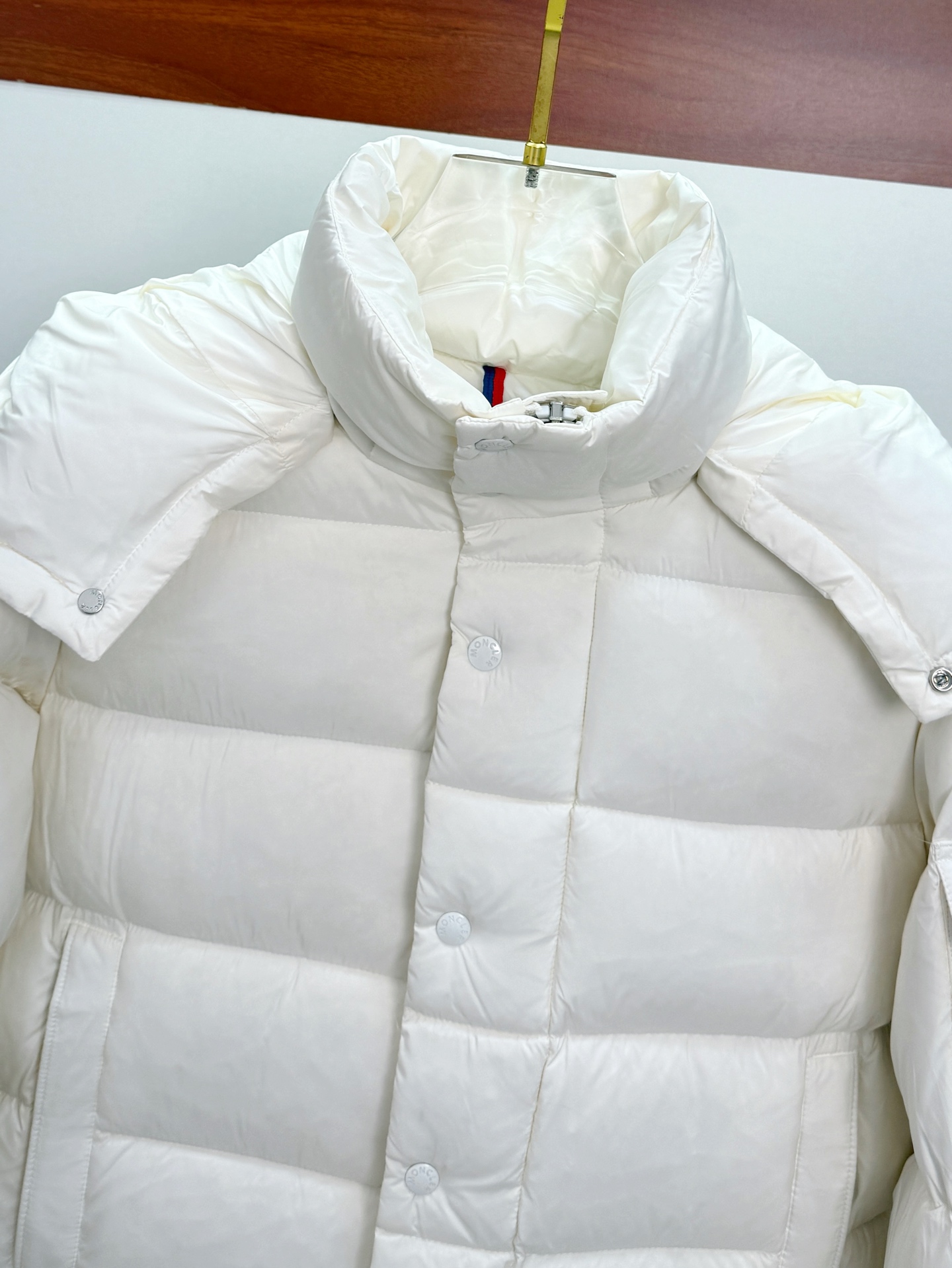 这款衣服是AAAAA 1:1 质量 (非常棒). 使用了和原版一模一样的材料. 商标部分也保持了和盟可睐/moncler一样. 图片拍摄是实物衣服拍摄, 您所收到的实物保证和我们图片一模一样.