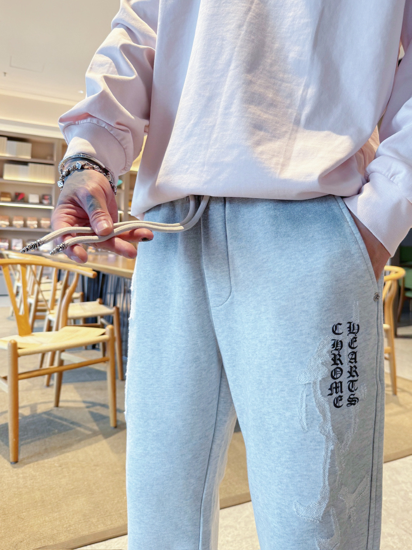 这款衣服是AAAAA 1:1 质量 (非常棒). 使用了和原版一模一样的材料. 商标部分也保持了和克罗心/Chrome Hearts一样. 图片拍摄是实物衣服拍摄, 您所收到的实物保证和我们图片一模一样.