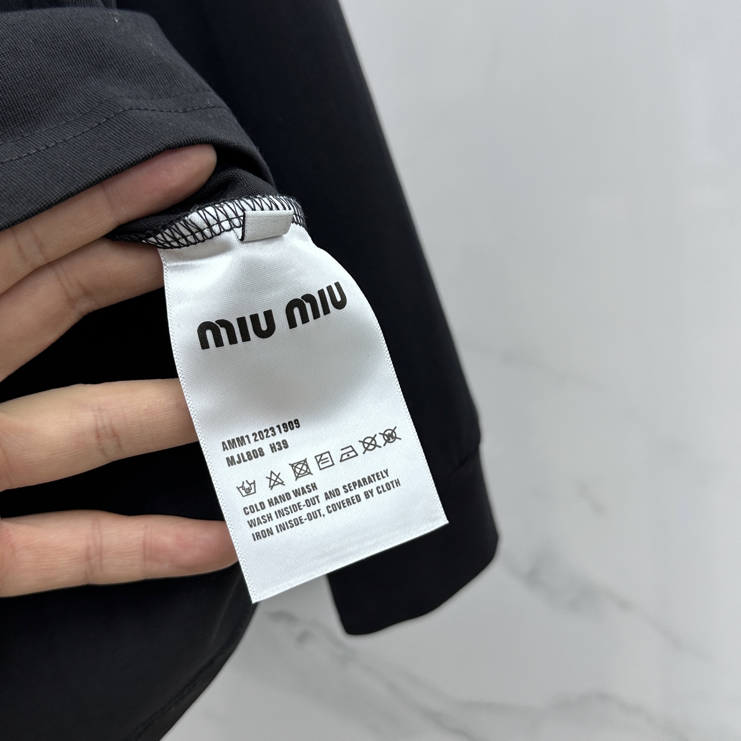 这款衣服是AAAAA 1:1 质量 (非常棒). 使用了和原版一模一样的材料. 商标部分也保持了和缪缪/Miu Miu一样. 图片拍摄是实物衣服拍摄, 您所收到的实物保证和我们图片一模一样.