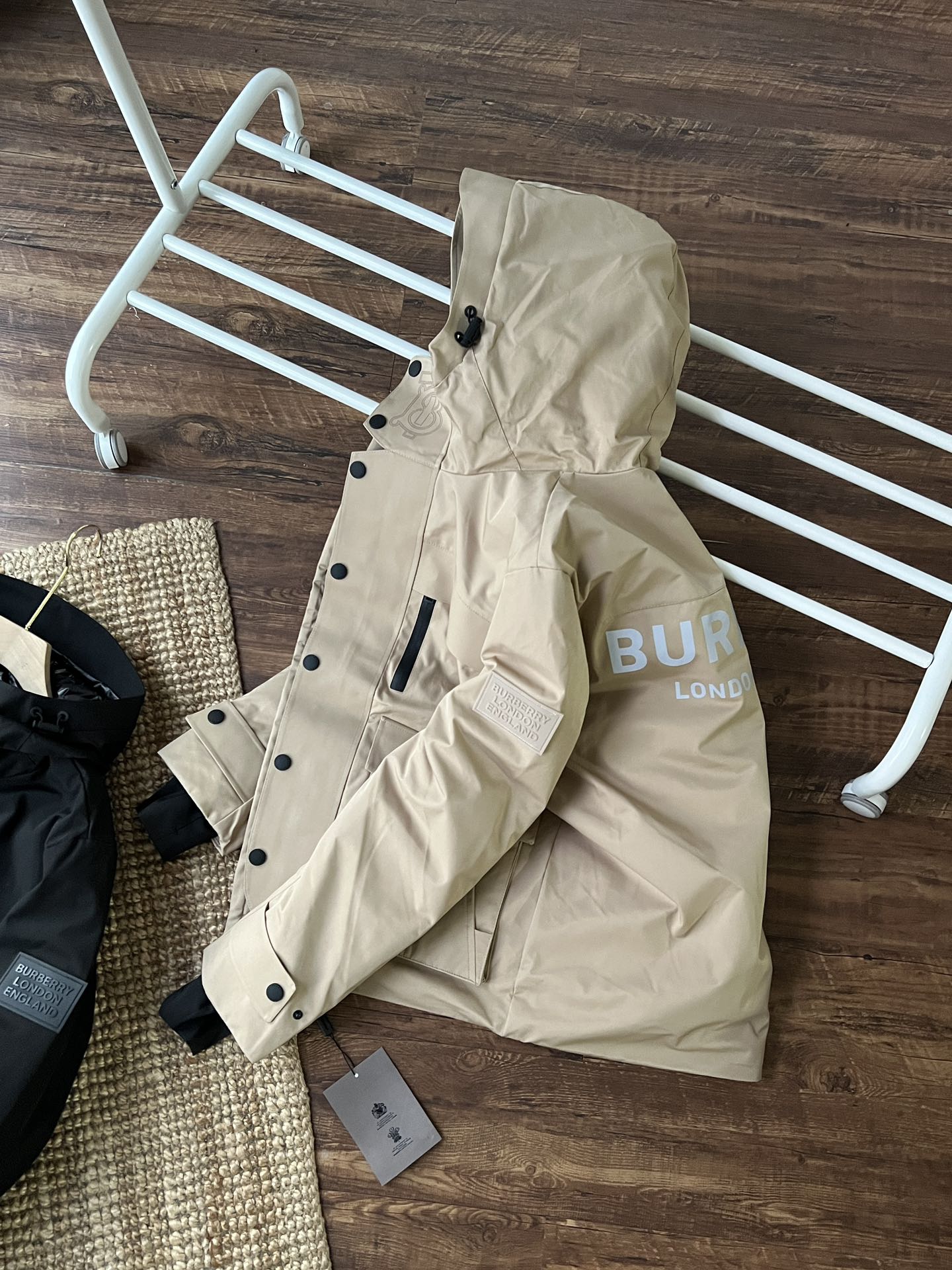 这款衣服是AAAAA 1:1 质量 (非常棒). 使用了和原版一模一样的材料. 商标部分也保持了和巴宝莉/Burberry一样. 图片拍摄是实物衣服拍摄, 您所收到的实物保证和我们图片一模一样.