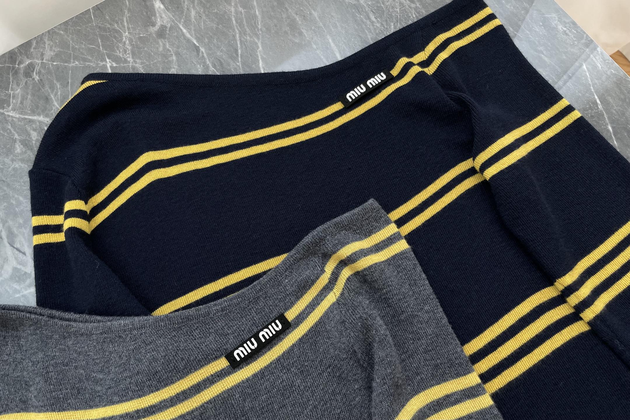这款衣服是AAAAA 1:1 质量 (非常棒). 使用了和原版一模一样的材料. 商标部分也保持了和缪缪/Miu Miu一样. 图片拍摄是实物衣服拍摄, 您所收到的实物保证和我们图片一模一样.
