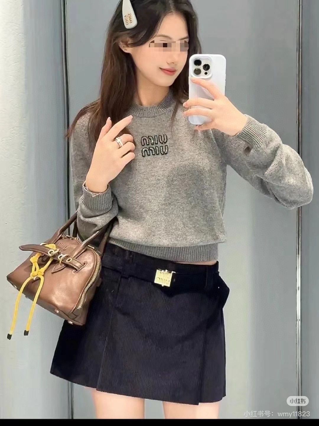 这款衣服是AAAAA 1:1 质量 (非常棒). 使用了和原版一模一样的材料. 商标部分也保持了和缪缪/Miu Miu一样. 图片拍摄是实物衣服拍摄, 您所收到的实物保证和我们图片一模一样.