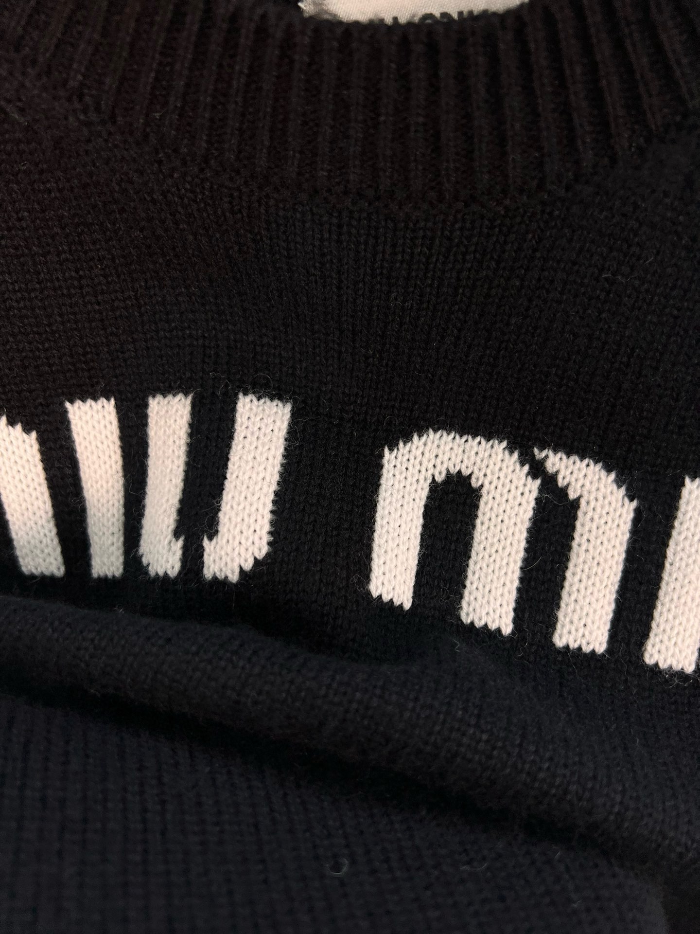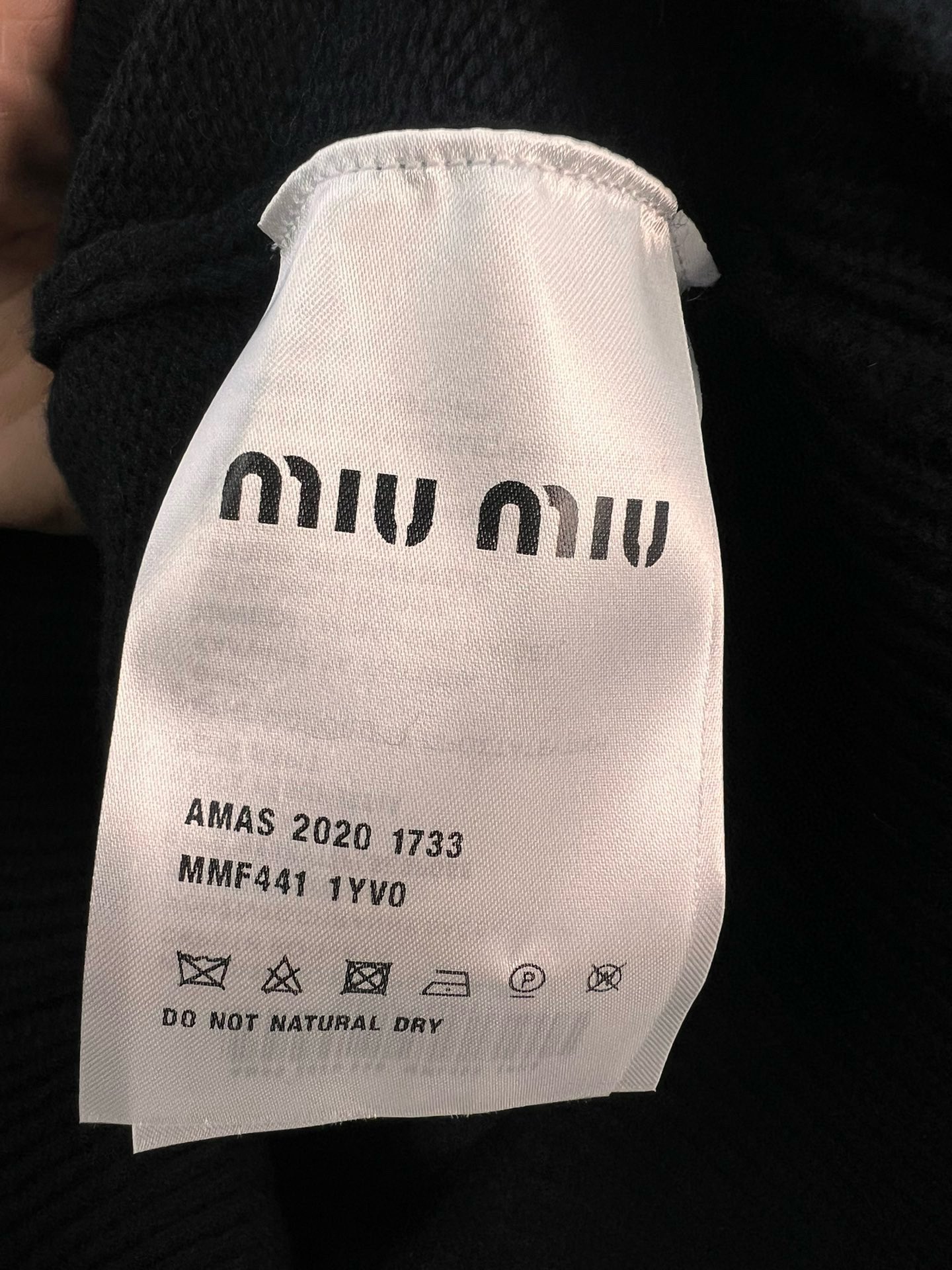 这款衣服是AAAAA 1:1 质量 (非常棒). 使用了和原版一模一样的材料. 商标部分也保持了和缪缪/Miu Miu一样. 图片拍摄是实物衣服拍摄, 您所收到的实物保证和我们图片一模一样.