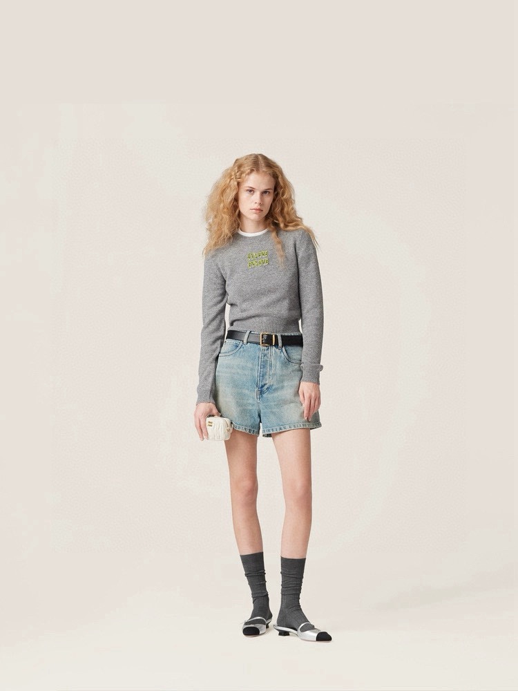 这款衣服是AAAAA 1:1 质量 (非常棒). 使用了和原版一模一样的材料. 商标部分也保持了和缪缪/Miu Miu一样. 图片拍摄是实物衣服拍摄, 您所收到的实物保证和我们图片一模一样.