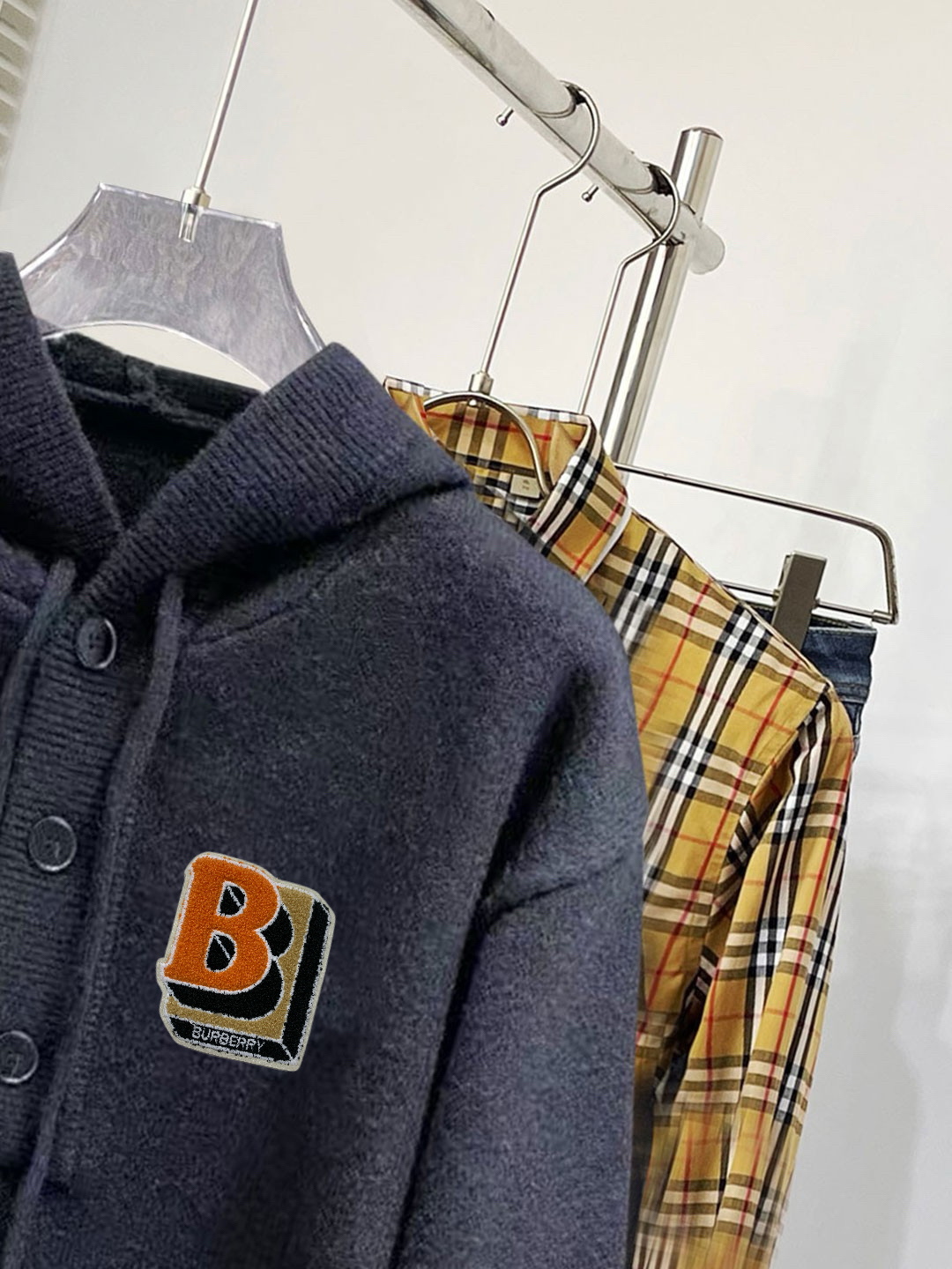 这款衣服是AAAAA 1:1 质量 (非常棒). 使用了和原版一模一样的材料. 商标部分也保持了和巴宝莉/Burberry一样. 图片拍摄是实物衣服拍摄, 您所收到的实物保证和我们图片一模一样.