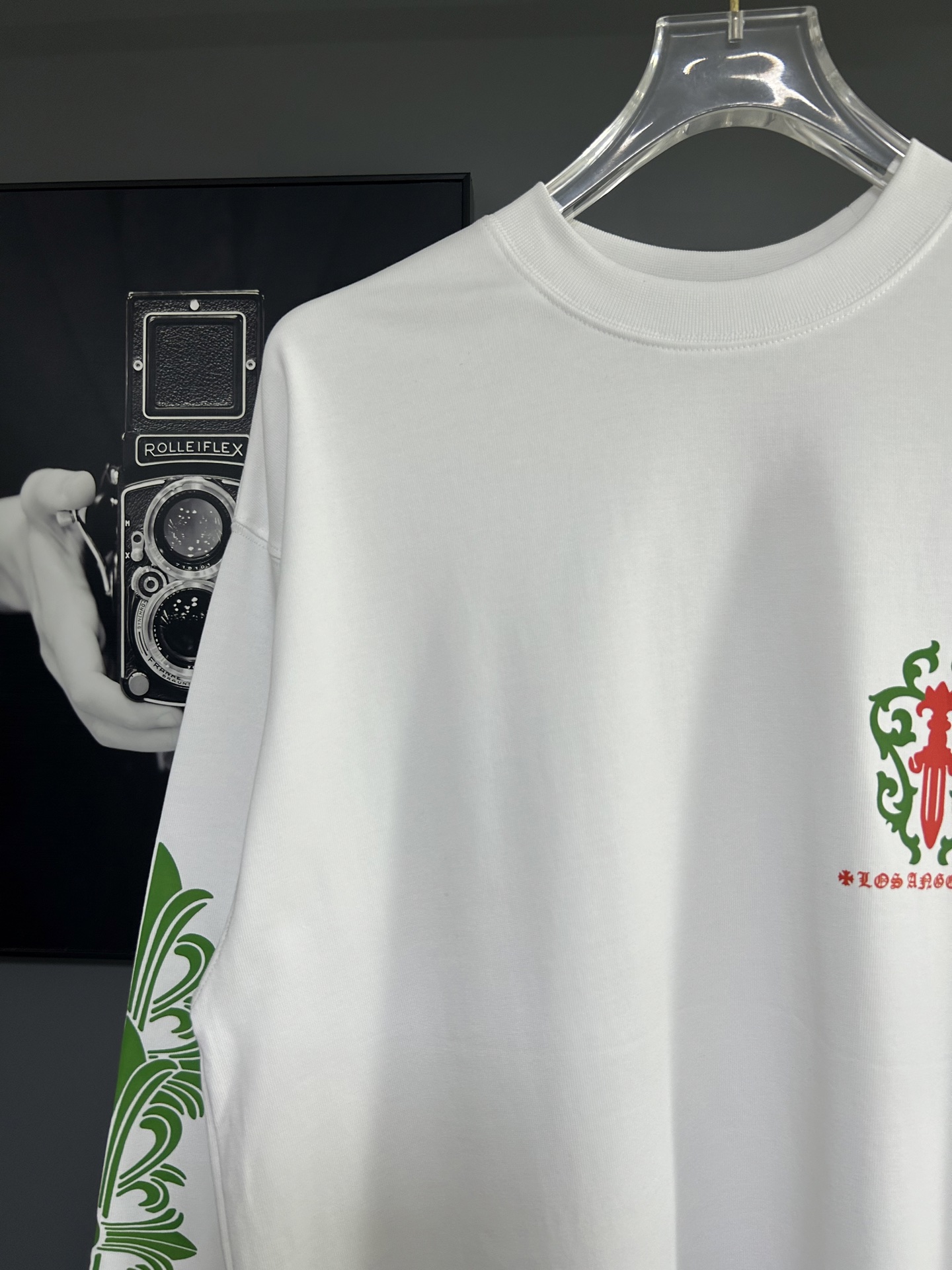 这款衣服是AAAAA 1:1 质量 (非常棒). 使用了和原版一模一样的材料. 商标部分也保持了和克罗心/Chrome Hearts一样. 图片拍摄是实物衣服拍摄, 您所收到的实物保证和我们图片一模一样.