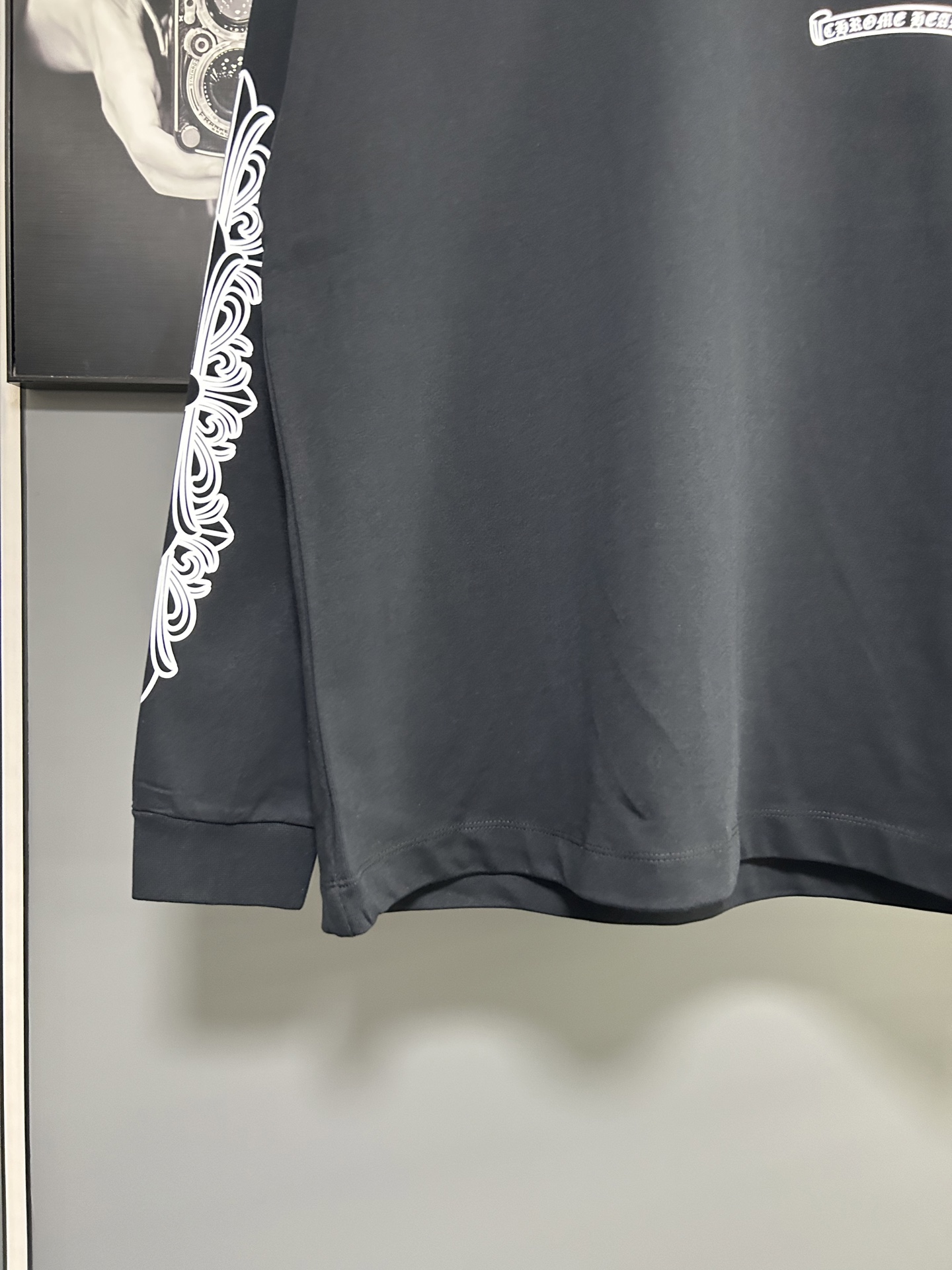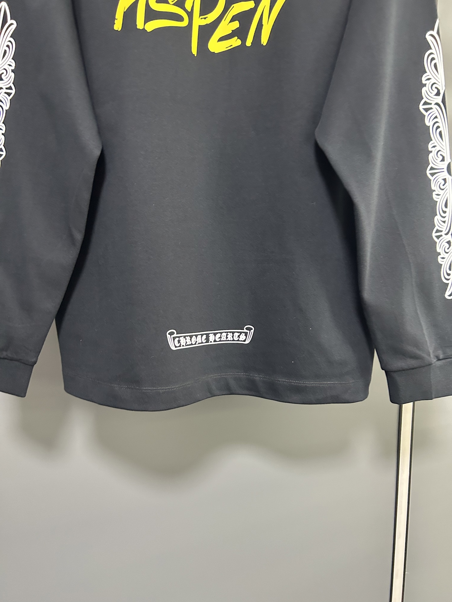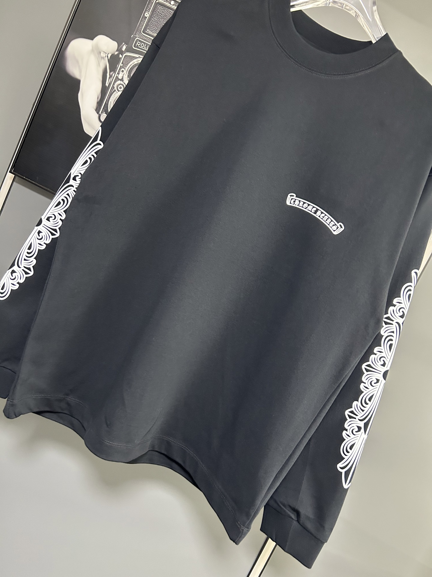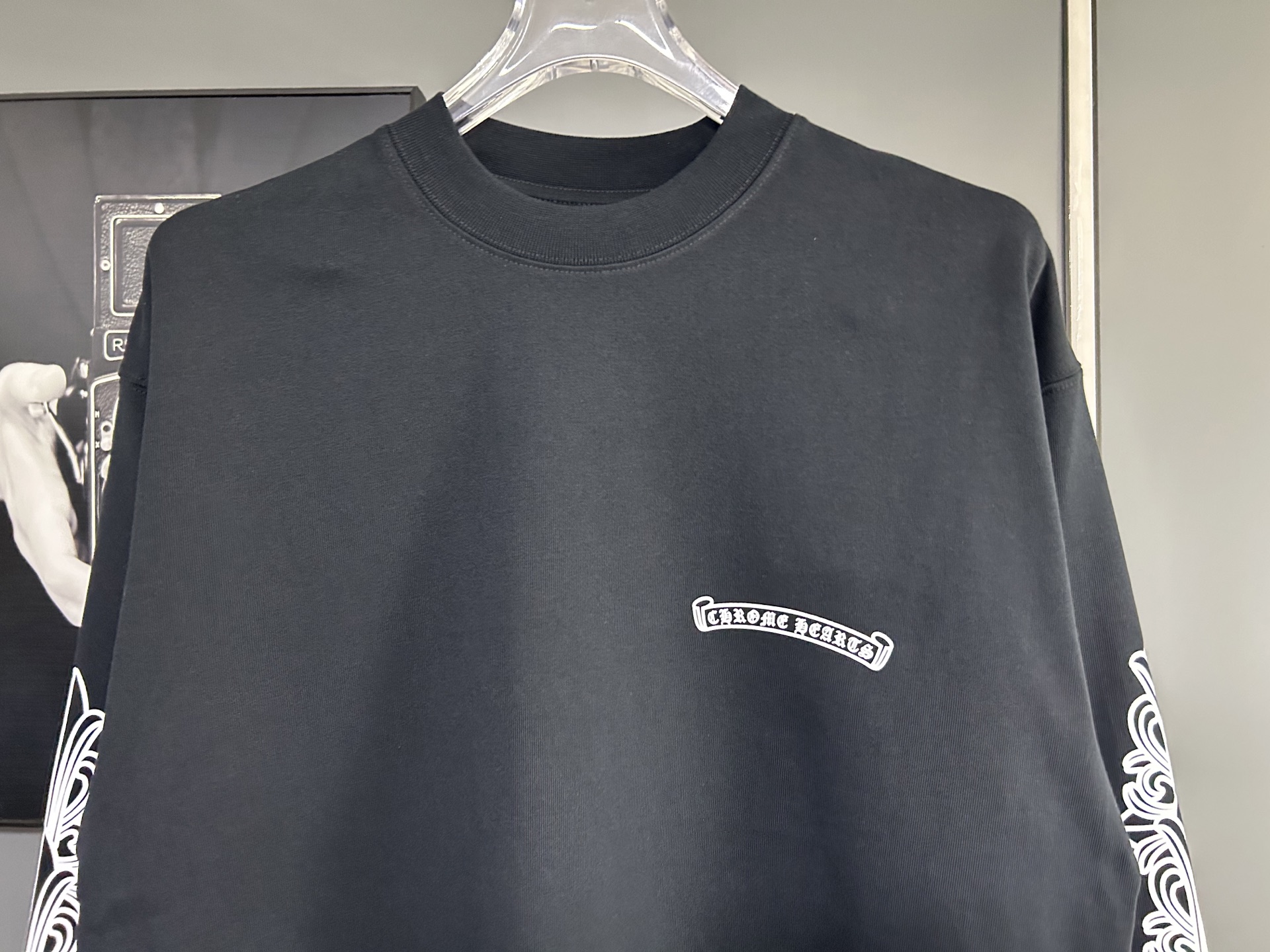 这款衣服是AAAAA 1:1 质量 (非常棒). 使用了和原版一模一样的材料. 商标部分也保持了和克罗心/Chrome Hearts一样. 图片拍摄是实物衣服拍摄, 您所收到的实物保证和我们图片一模一样.