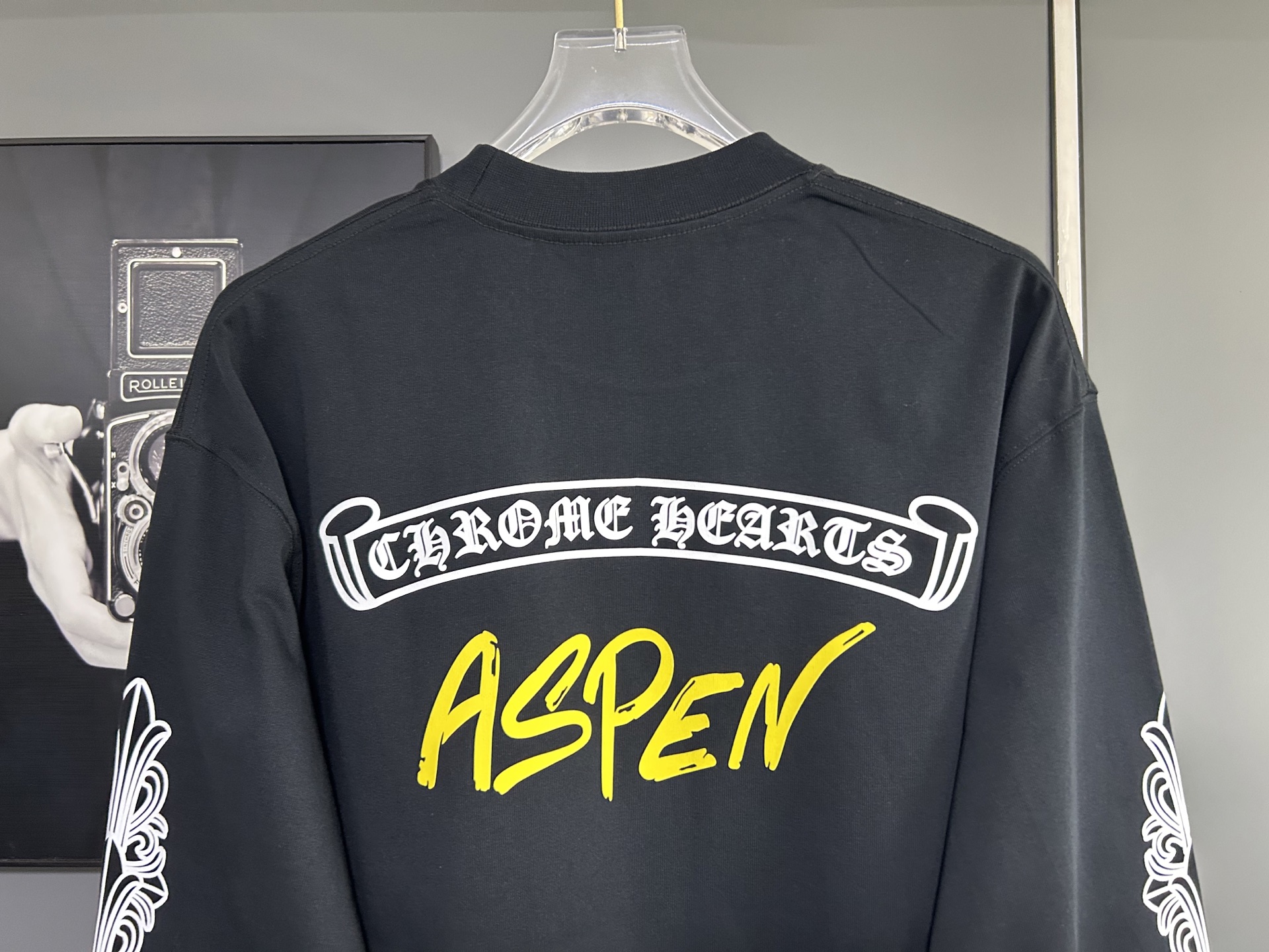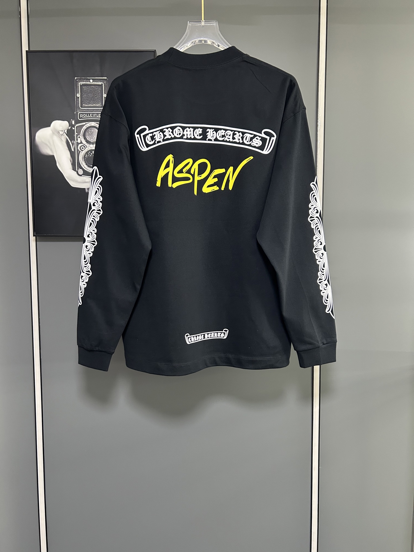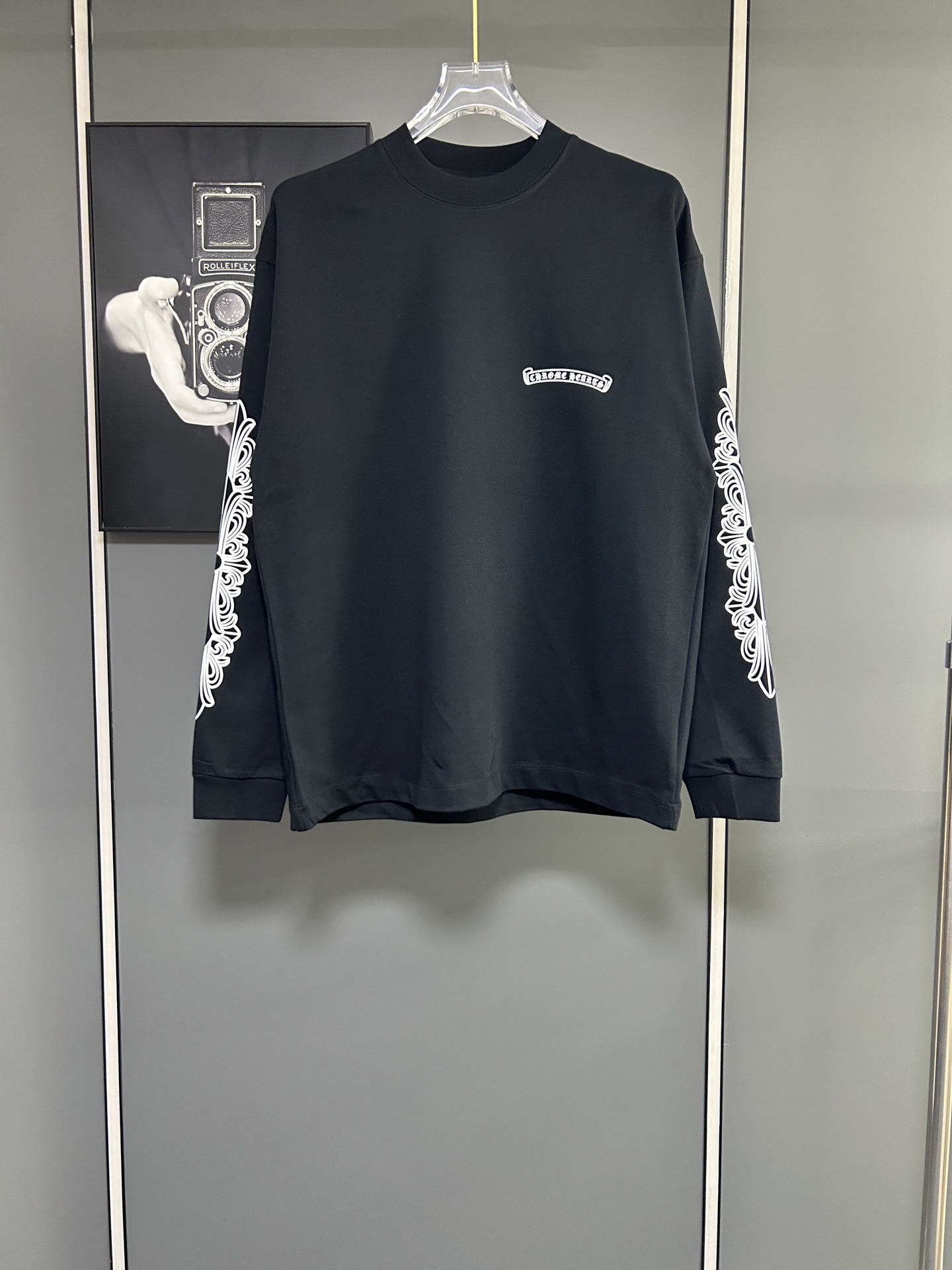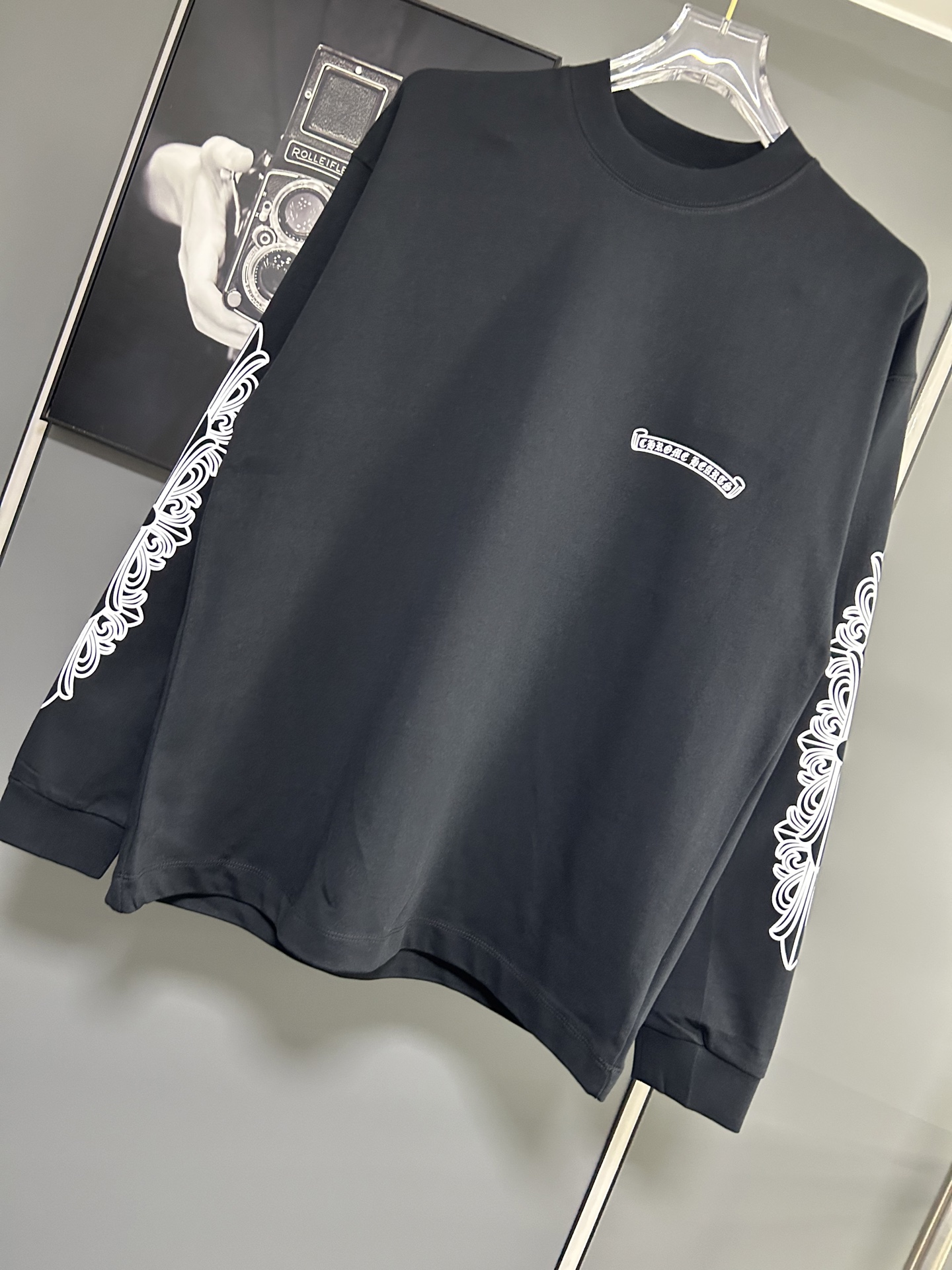 这款衣服是AAAAA 1:1 质量 (非常棒). 使用了和原版一模一样的材料. 商标部分也保持了和克罗心/Chrome Hearts一样. 图片拍摄是实物衣服拍摄, 您所收到的实物保证和我们图片一模一样.