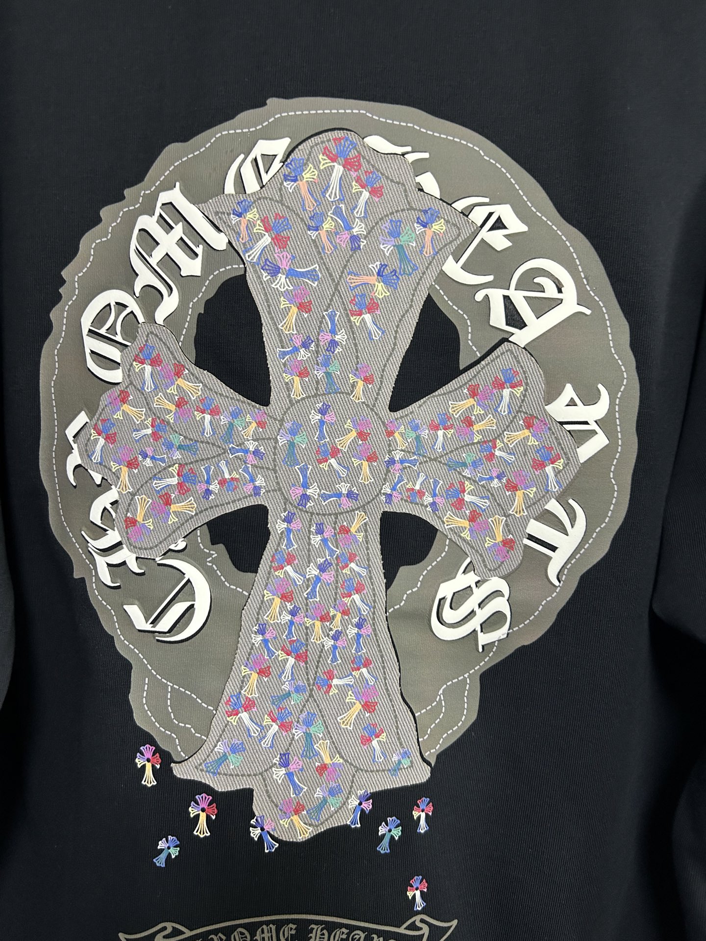这款衣服是AAAAA 1:1 质量 (非常棒). 使用了和原版一模一样的材料. 商标部分也保持了和克罗心/Chrome Hearts一样. 图片拍摄是实物衣服拍摄, 您所收到的实物保证和我们图片一模一样.