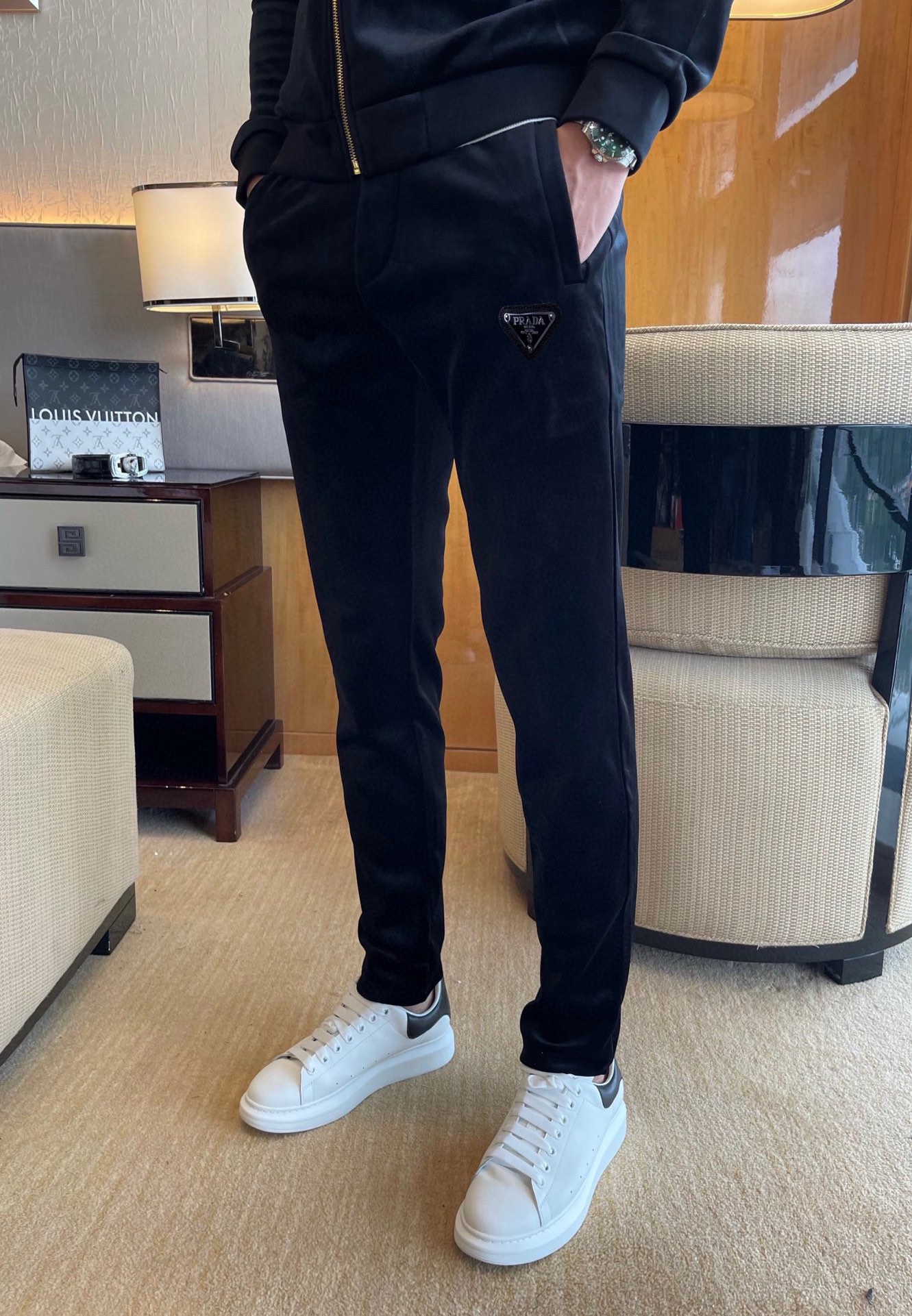 这款衣服是AAAAA 1:1 质量 (非常棒). 使用了和原版一模一样的材料. 商标部分也保持了和普拉达/Prada一样. 图片拍摄是实物衣服拍摄, 您所收到的实物保证和我们图片一模一样.