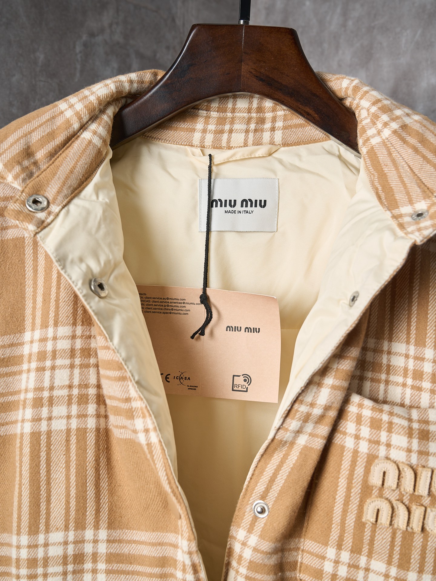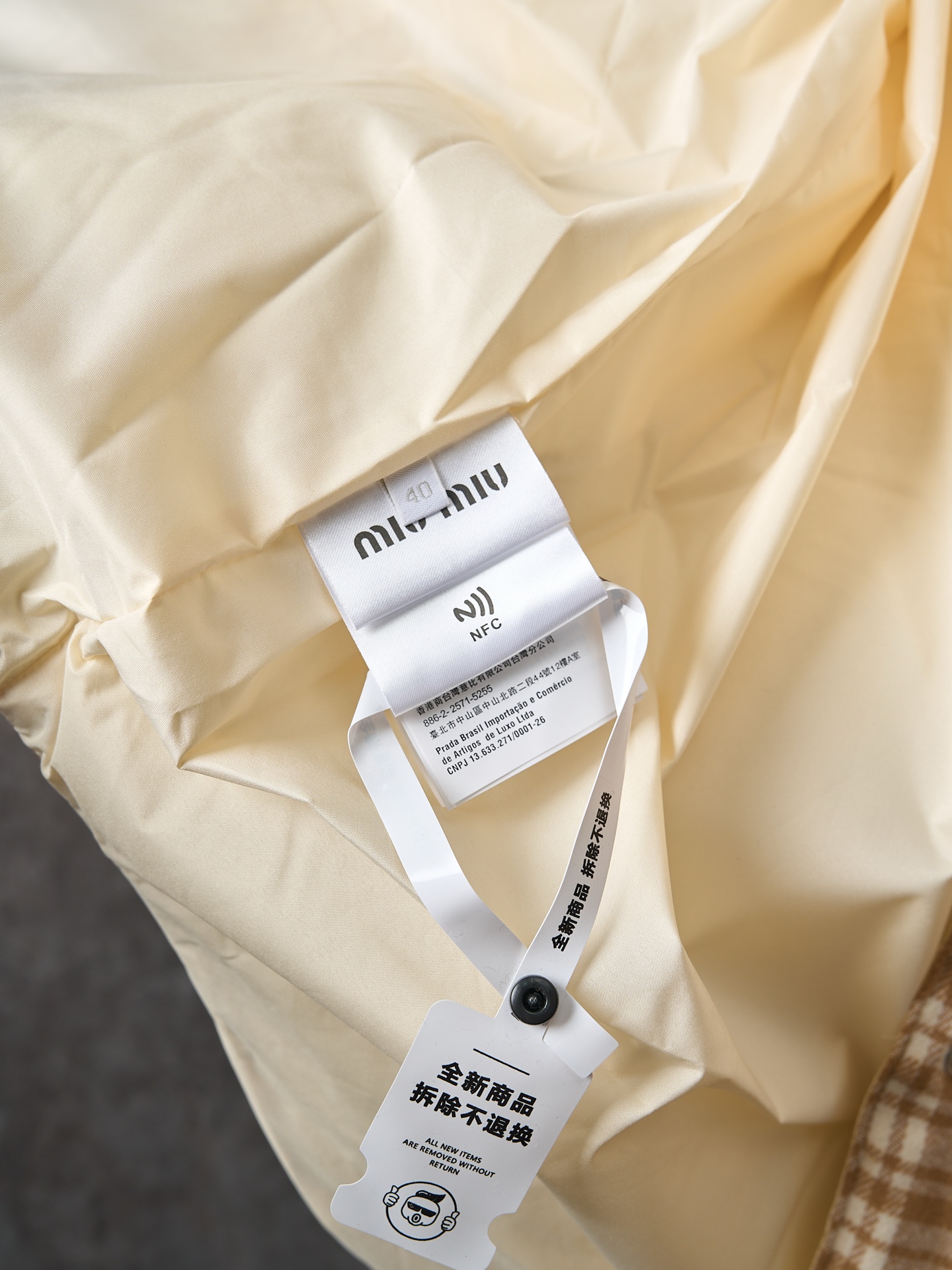 这款衣服是AAAAA 1:1 质量 (非常棒). 使用了和原版一模一样的材料. 商标部分也保持了和缪缪/Miu Miu一样. 图片拍摄是实物衣服拍摄, 您所收到的实物保证和我们图片一模一样.