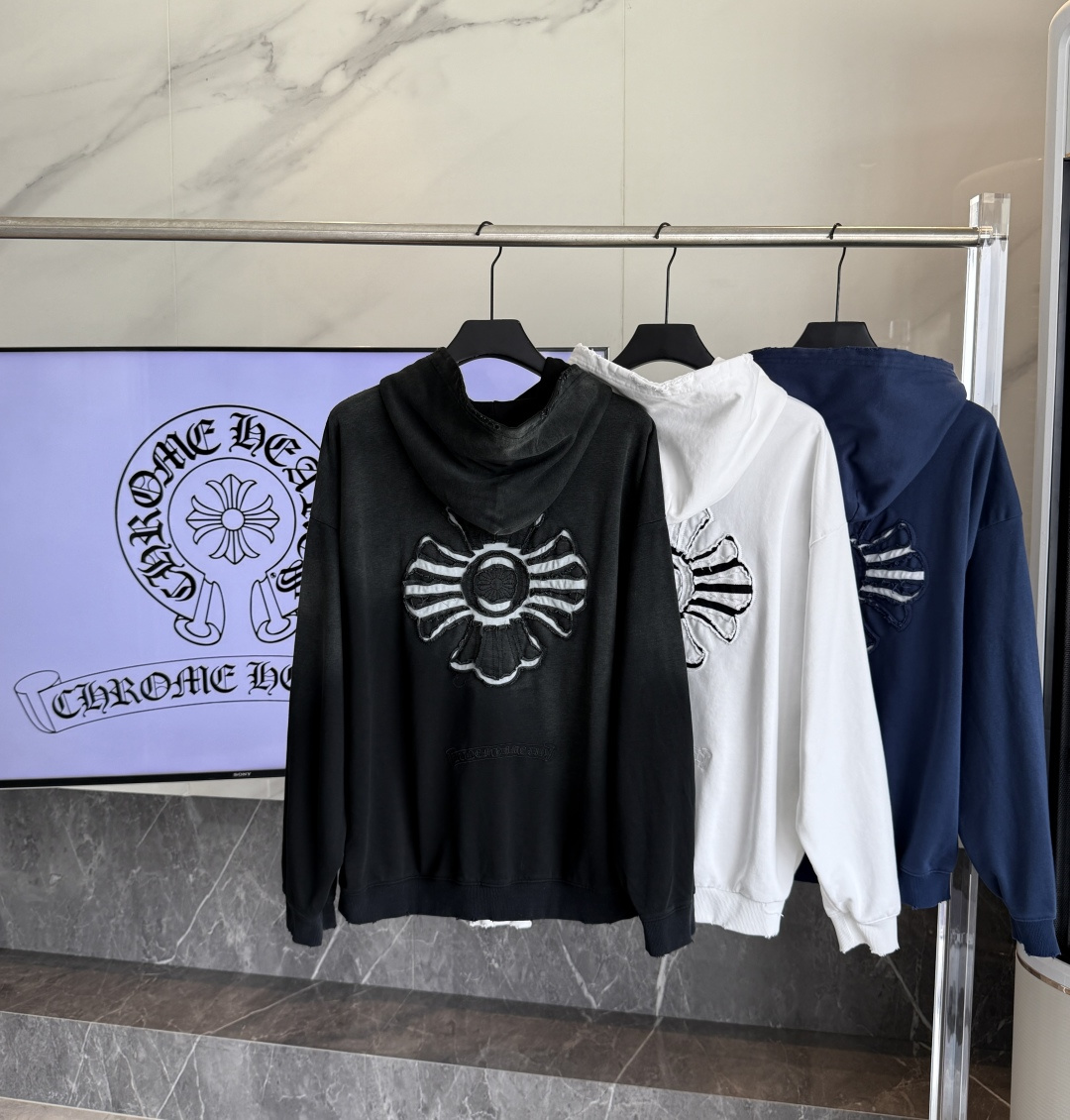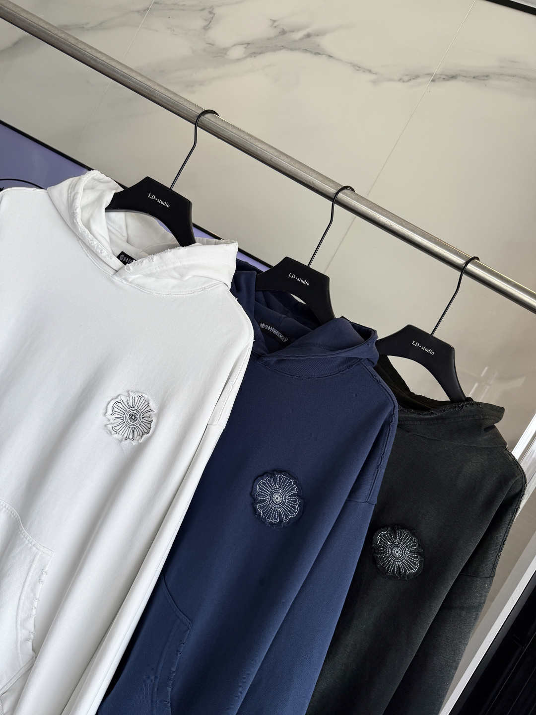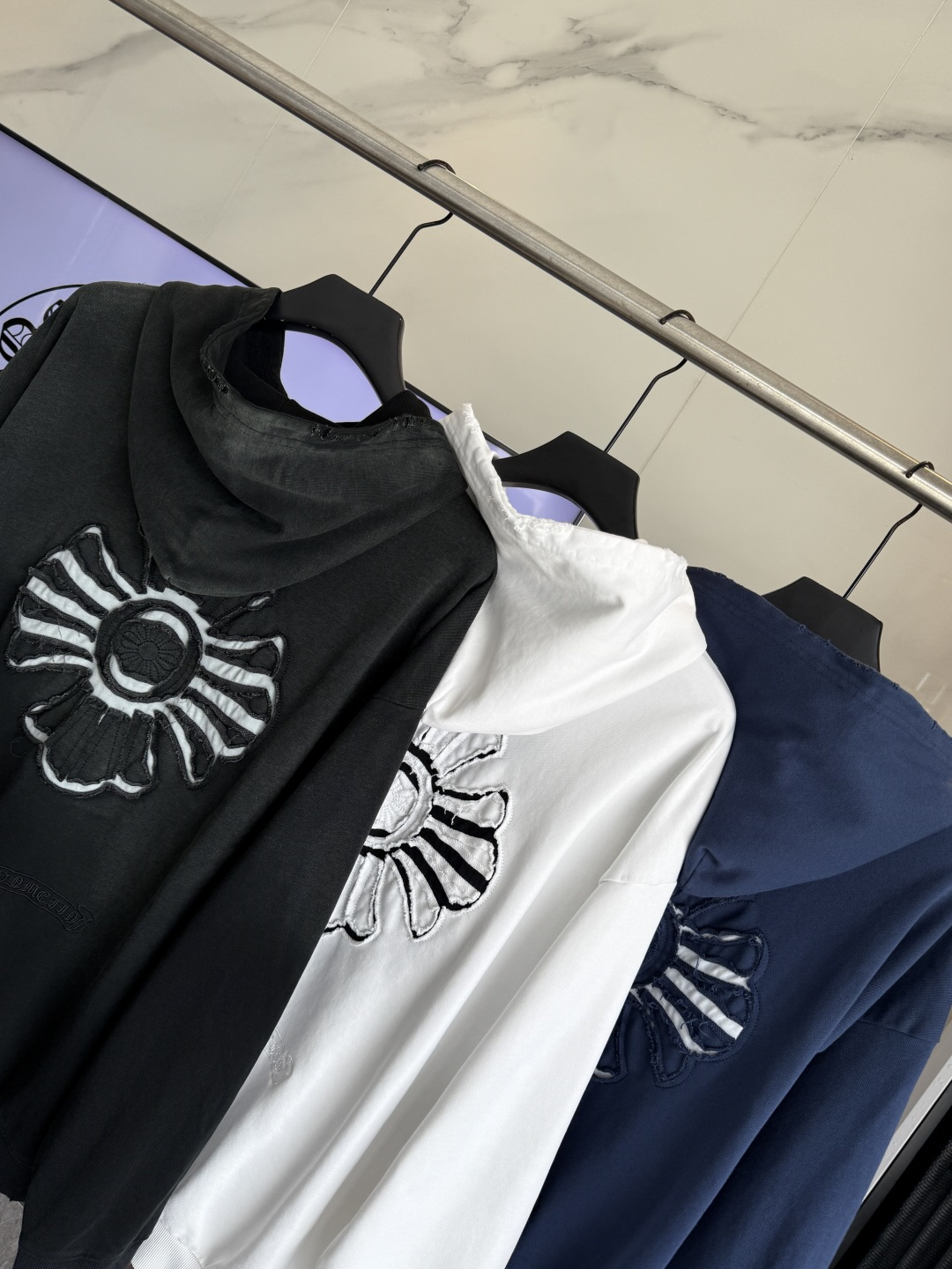 这款衣服是AAAAA 1:1 质量 (非常棒). 使用了和原版一模一样的材料. 商标部分也保持了和克罗心/Chrome Hearts一样. 图片拍摄是实物衣服拍摄, 您所收到的实物保证和我们图片一模一样.