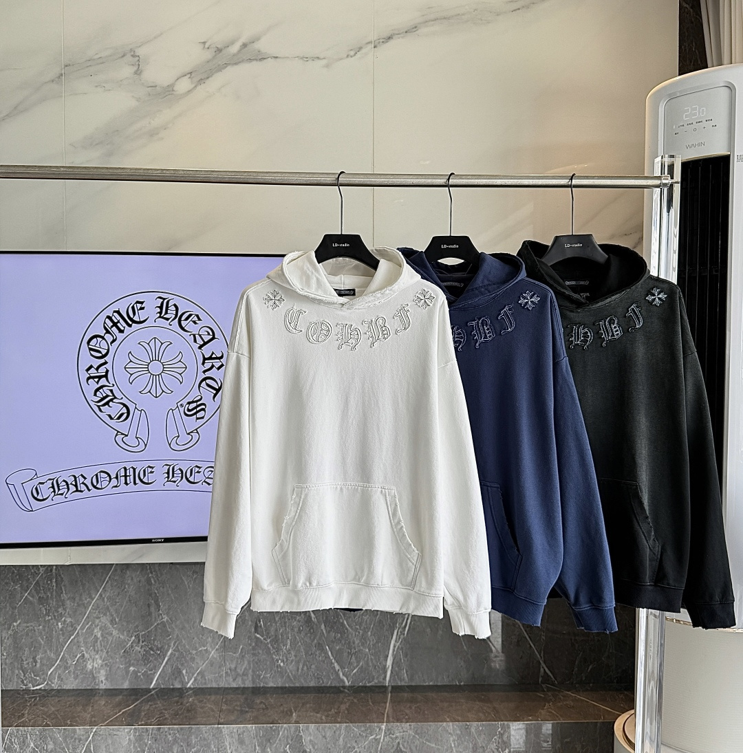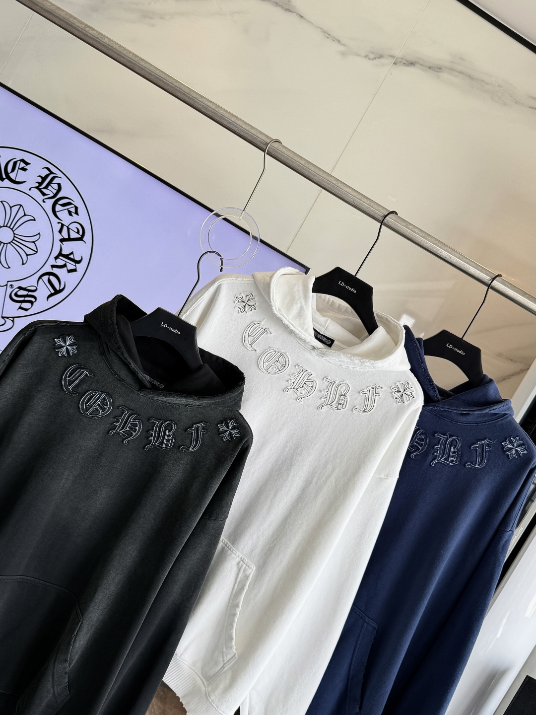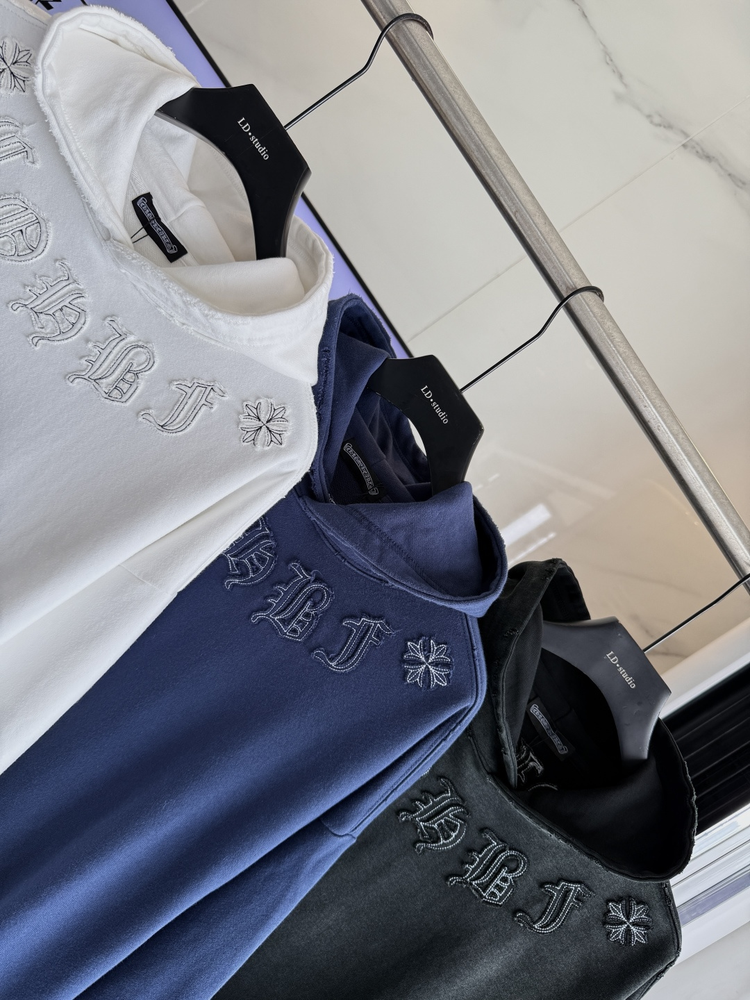 这款衣服是AAAAA 1:1 质量 (非常棒). 使用了和原版一模一样的材料. 商标部分也保持了和克罗心/Chrome Hearts一样. 图片拍摄是实物衣服拍摄, 您所收到的实物保证和我们图片一模一样.