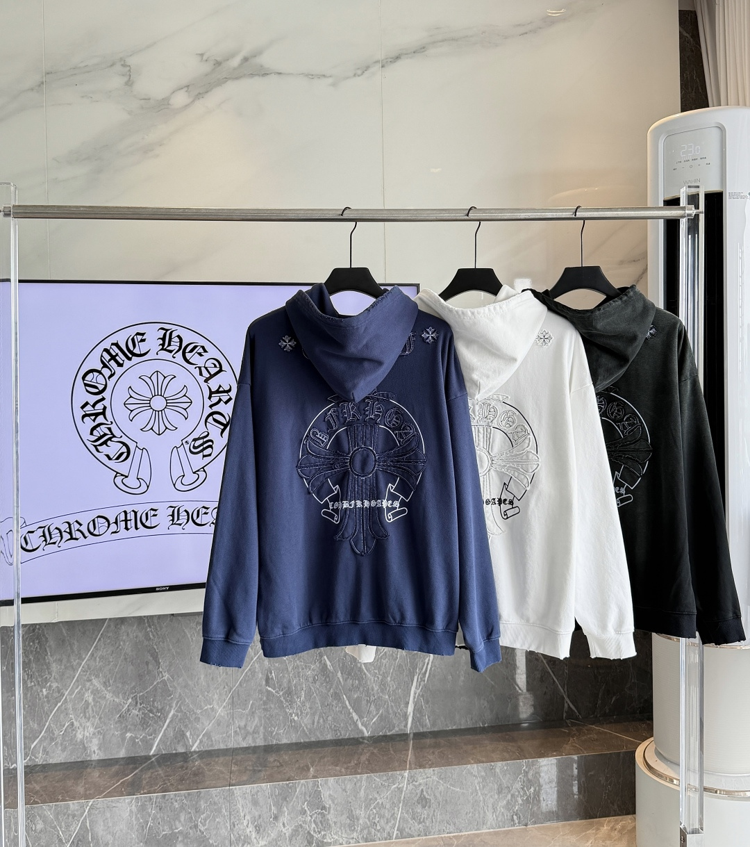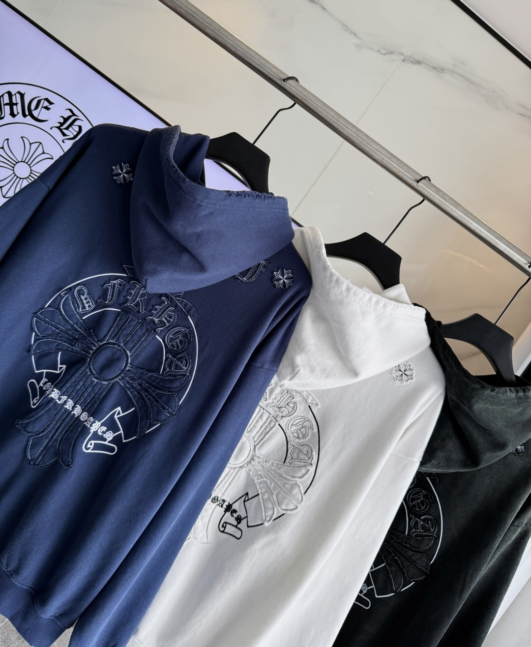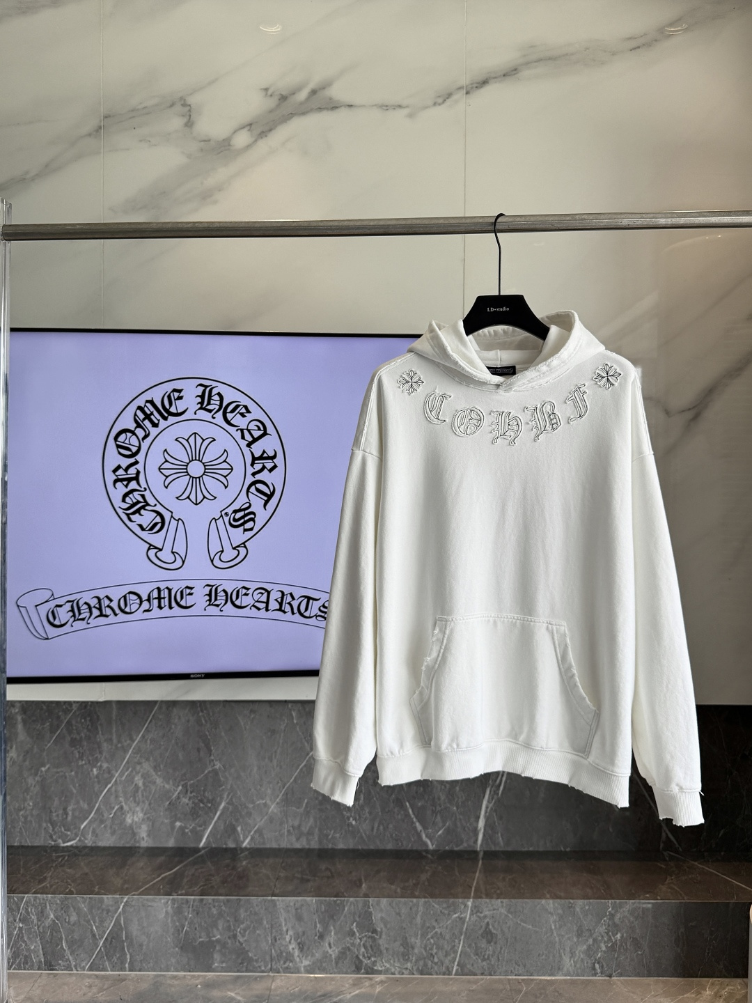 这款衣服是AAAAA 1:1 质量 (非常棒). 使用了和原版一模一样的材料. 商标部分也保持了和克罗心/Chrome Hearts一样. 图片拍摄是实物衣服拍摄, 您所收到的实物保证和我们图片一模一样.