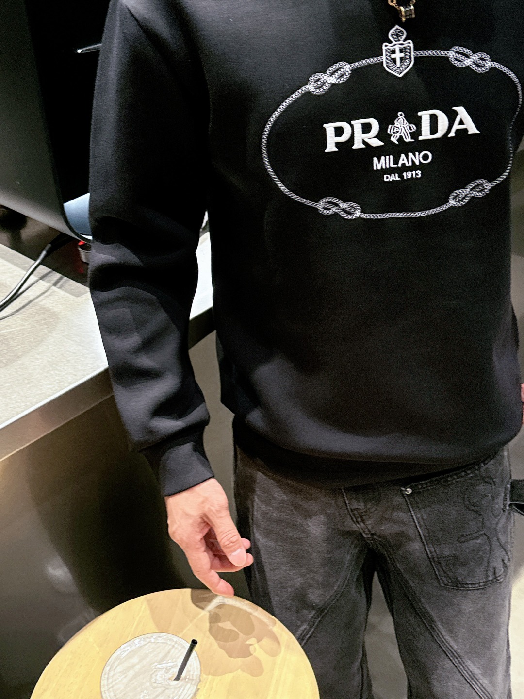 这款衣服是AAAAA 1:1 质量 (非常棒). 使用了和原版一模一样的材料. 商标部分也保持了和普拉达/Prada一样. 图片拍摄是实物衣服拍摄, 您所收到的实物保证和我们图片一模一样.