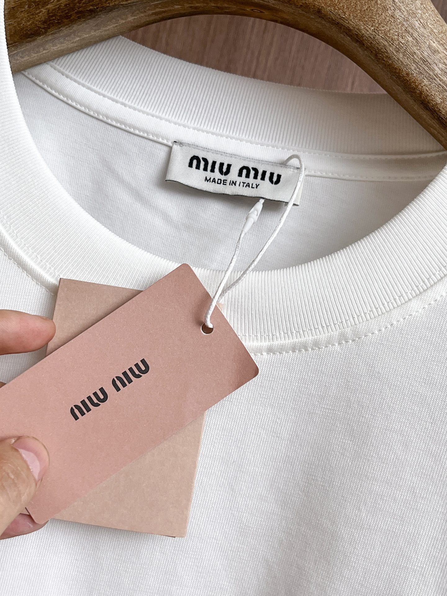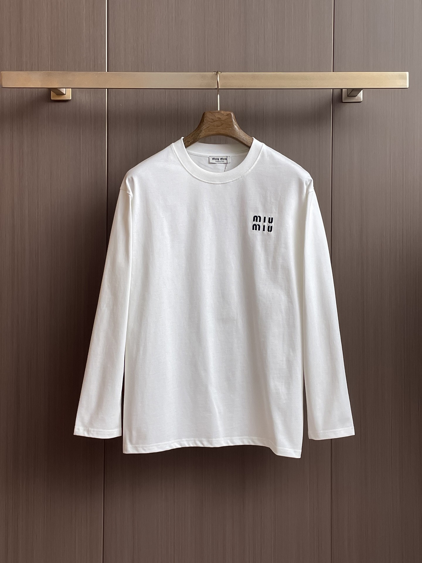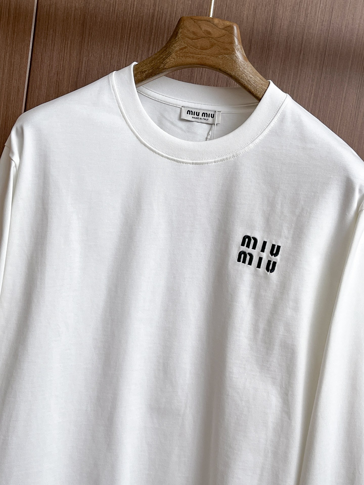 这款衣服是AAAAA 1:1 质量 (非常棒). 使用了和原版一模一样的材料. 商标部分也保持了和缪缪/Miu Miu一样. 图片拍摄是实物衣服拍摄, 您所收到的实物保证和我们图片一模一样.