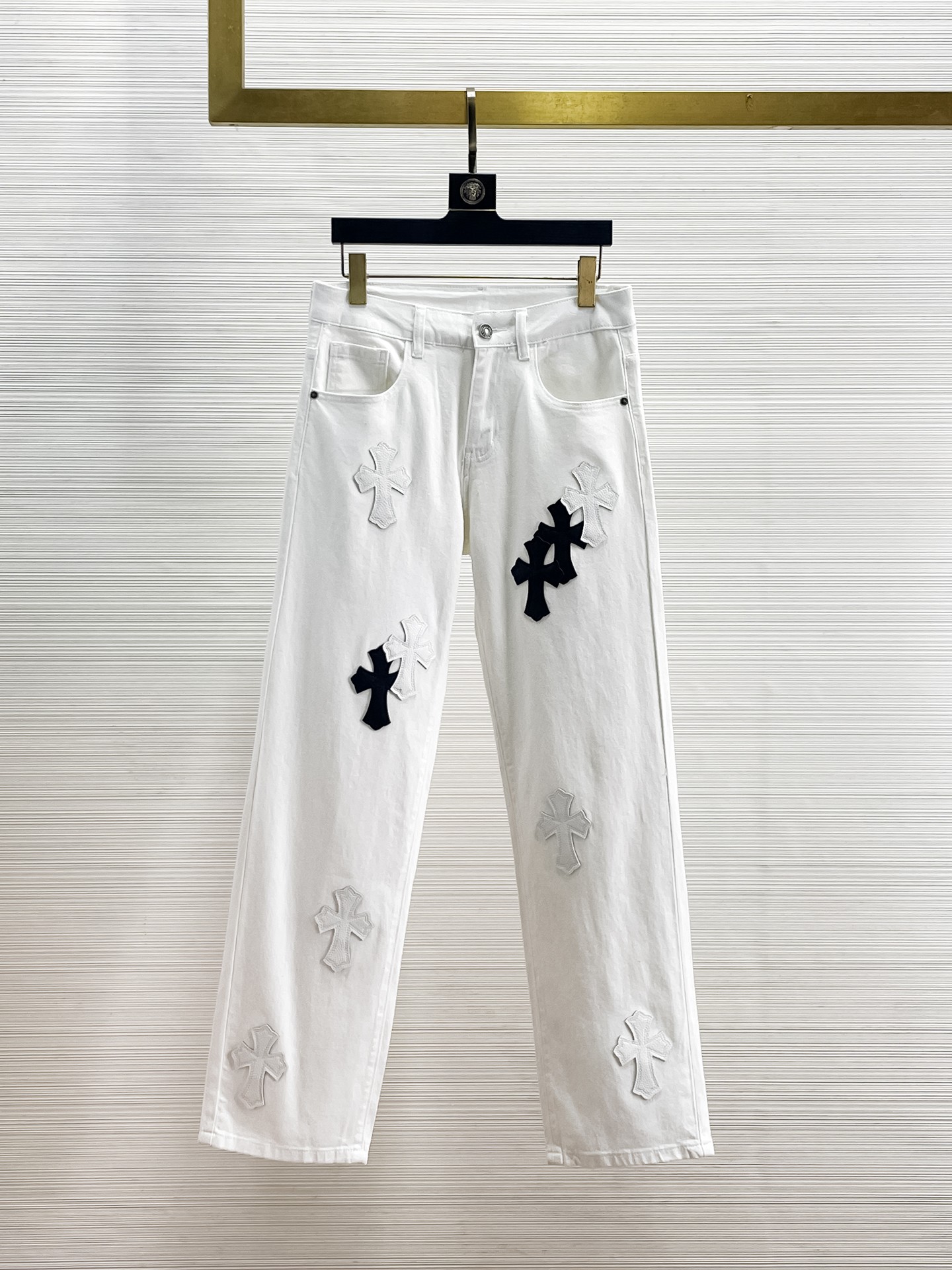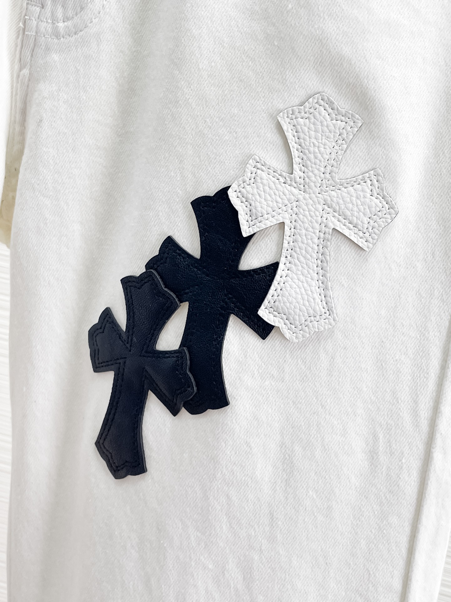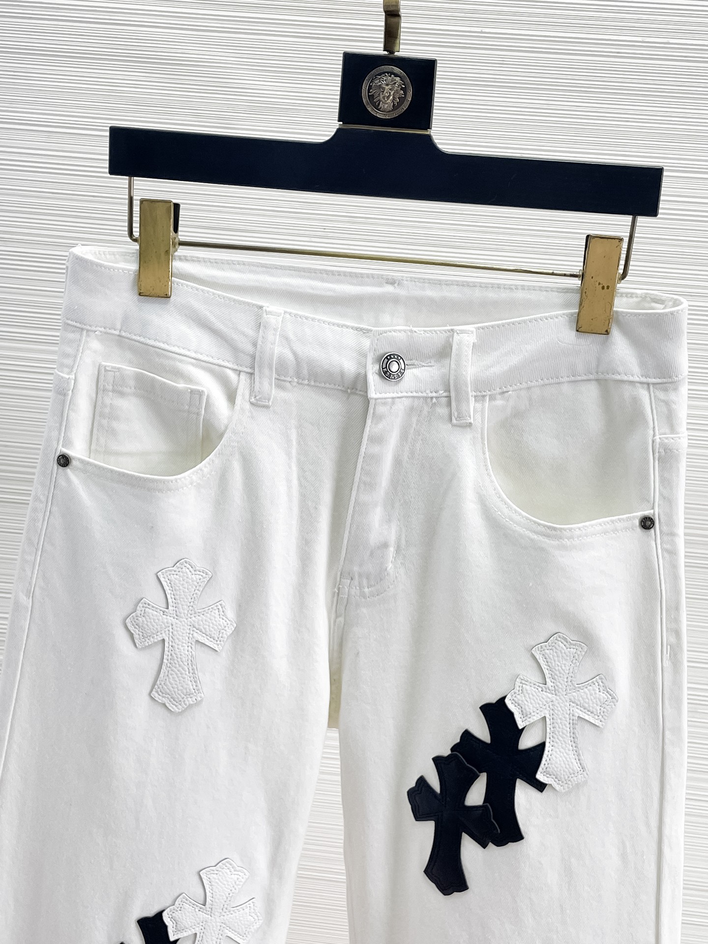 这款衣服是AAAAA 1:1 质量 (非常棒). 使用了和原版一模一样的材料. 商标部分也保持了和克罗心/Chrome Hearts一样. 图片拍摄是实物衣服拍摄, 您所收到的实物保证和我们图片一模一样.