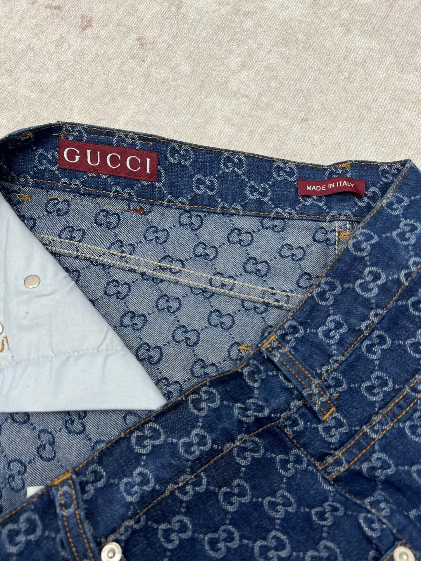 这款衣服是AAAAA 1:1 质量 (非常棒). 使用了和原版一模一样的材料. 商标部分也保持了和古奇/Gucci一样. 图片拍摄是实物衣服拍摄, 您所收到的实物保证和我们图片一模一样.